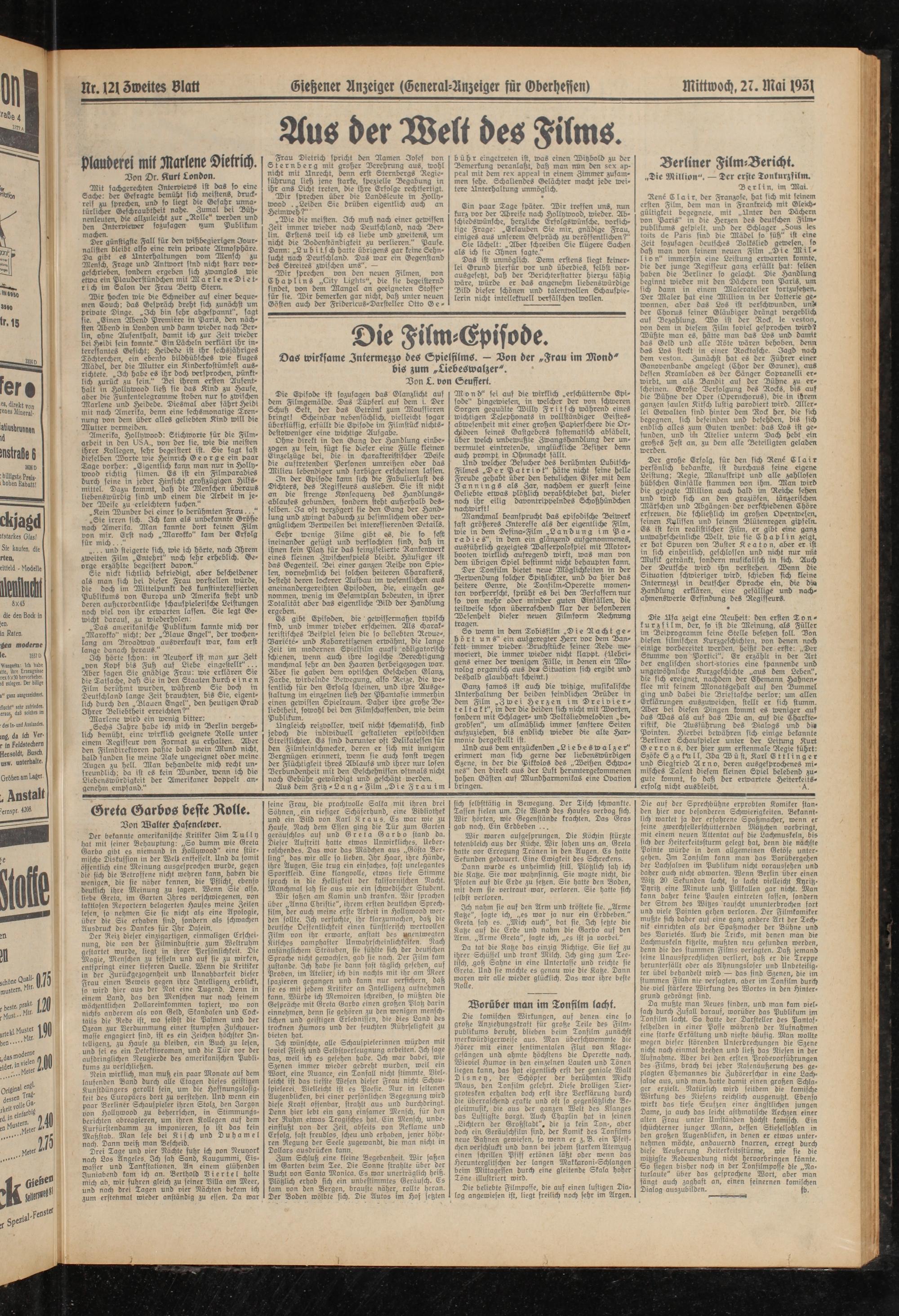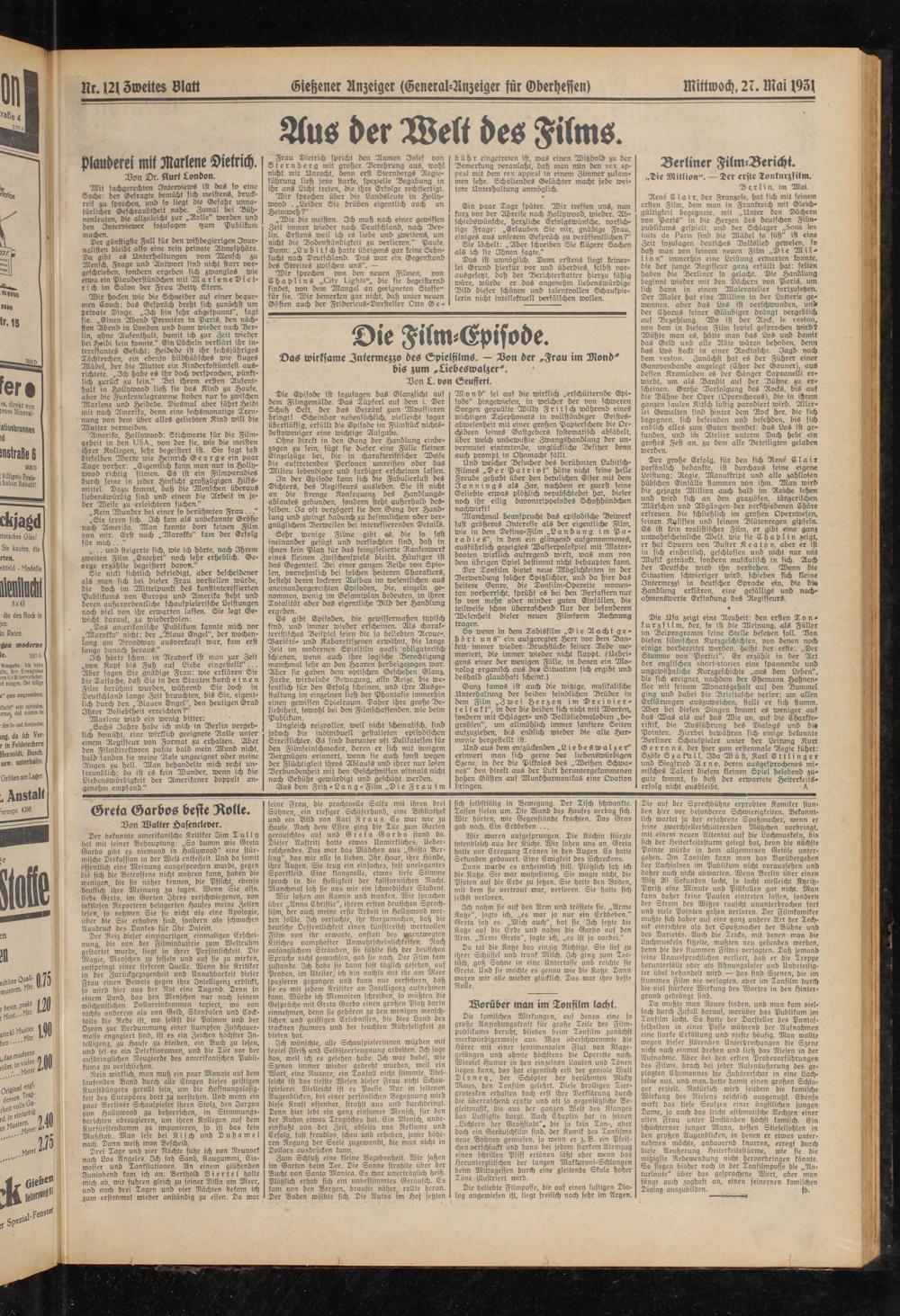 Nr. 121 Zweites Blatt Gießener Anzeiger (General-Anzeiger für Oberhessen)Mittwoch, 21. Mai 1951