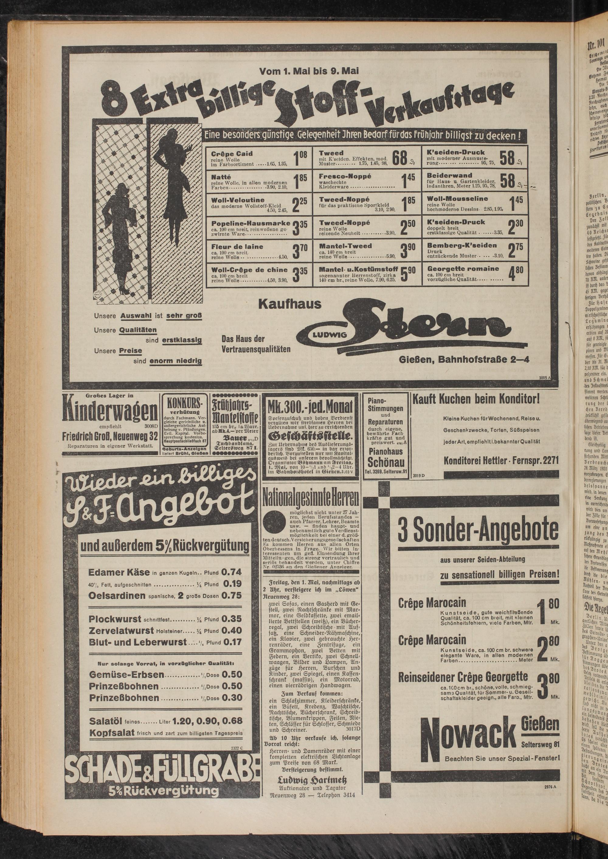 Spesenzuschuh und hohen Verdienst vergüten wir strebsamen Herren bei Uebernabine uns. hier zu errichtenden Geschäftsstelle Zur Uebernabine des Auslieferungslagers sind Mk. 650.— in bar erforderlich. Borzunellen nur mit Kavital- auSweis bei unserem bevollmächtigt. Organisator Bökmami am Freitag, 1. Mai, von 10-'/>l und ' ,2-4 Uhr, im Babnboisbotcl in (0icRen.3jO3 v