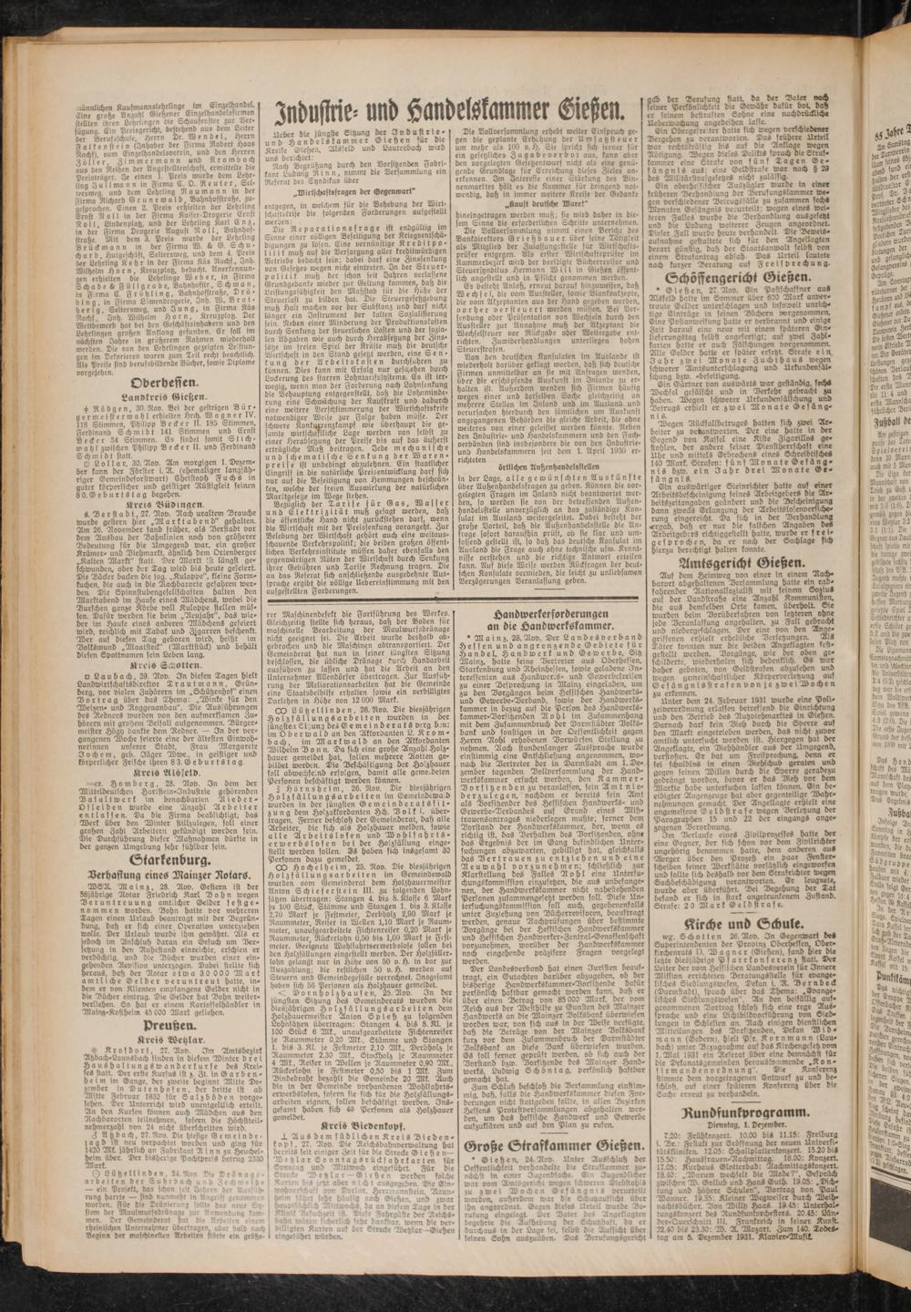 Heber die jüngste Sitzung der 3 n 6 u ft r t e - und Handelskammer Giesten für die Kreise Giesten, AlSfeld und Lauterbach wird unS berichtet: .