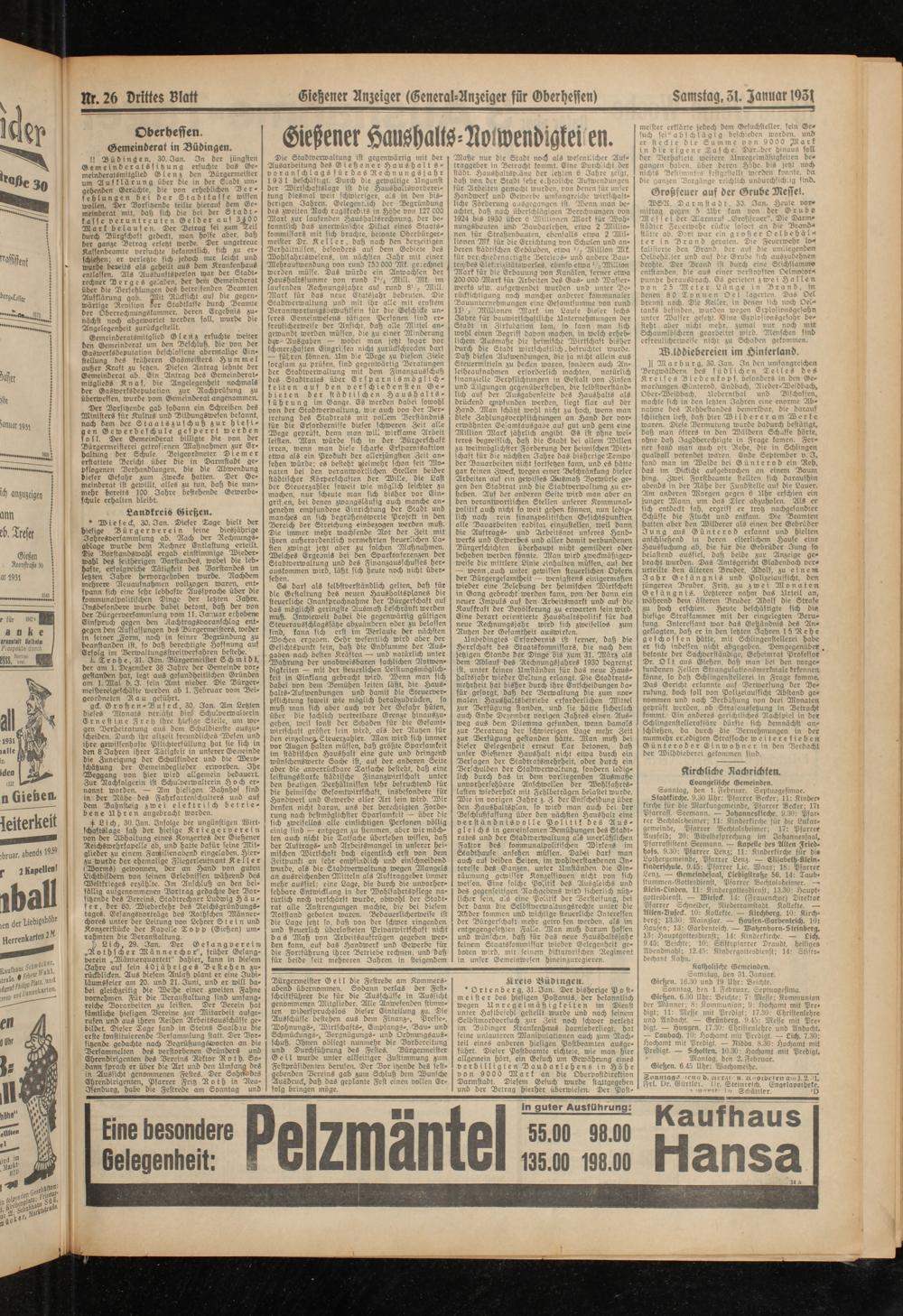 Samstag, 31. Zanuar 1931