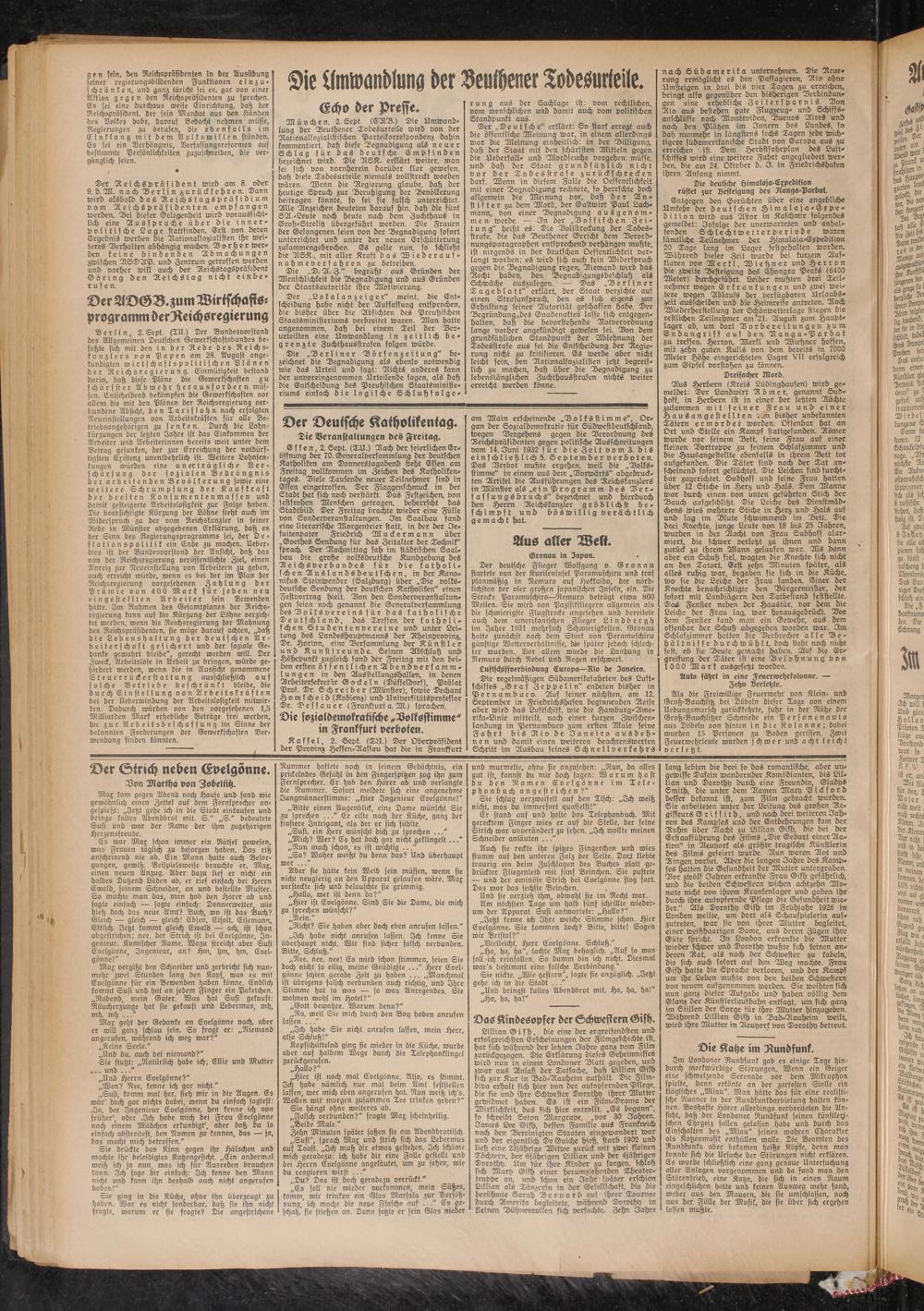 Der „Deutsche" erklärt: So stark erregt auch die öffentliche Meinung war, in einem allerdings war die Meinung einheitlich: in der Billigung, daß der Staat mit den schärfsten Mitteln gegen die äleberfall- und Mordseuche vorgehen müsse, und daß der Staat grundsätzlich nicht vor der Todesstrafe zurückschrecken darf. Wenn in diesem Falle die Oeffentlichkeit mit einer Begnadigung rechnete, so herrschte doch allgemein die Meinung vor, daß der An- st i f t e r zu dem Mord, der Gastwirt Paul Lach- maim, von einer Begnadigung ausgenommen werde. — Sn der „Bossischen Zeitung" heißt es: Die Vollstreckung der Todesstrafe, die das Beuthener Gericht dem Verordnungsparagraphen entsprechend verhängen muhte, ist nirgends in der deutschen Oeffentlichkeit verlangt worden; es wird sich auch kein Widerspruch gegen die Begnadigung regen. Riemand wird das Recht haben, den Degnadigungsbeschluh als Schwäche auszulegen. — Das „Berliner Tageblatt" erklärt, der Staat verzichte auf einen Strafanspruch, den es sich eigens zur Erhaltung seiner Autorität geschaffen habe. Der Begründung.des Gnadenaktes lasse sich entgegenhalten, daß die bevorstehende Rotverordnung lange vorher angekündigt gewesen sei. Von dem grundsätzlichen Standpunkt der Ablehnung der Todesstrafe aus sei die Entscheidung der Regierung nicht zu kritisieren. Es werde aber nicht leicht sein, den Rationalsozialisten jetzt begreiflich zu machen, daß über die Begnadigung zu lebenslänglichen Zuchthausstrafen nichts weiter erreicht werden könne.