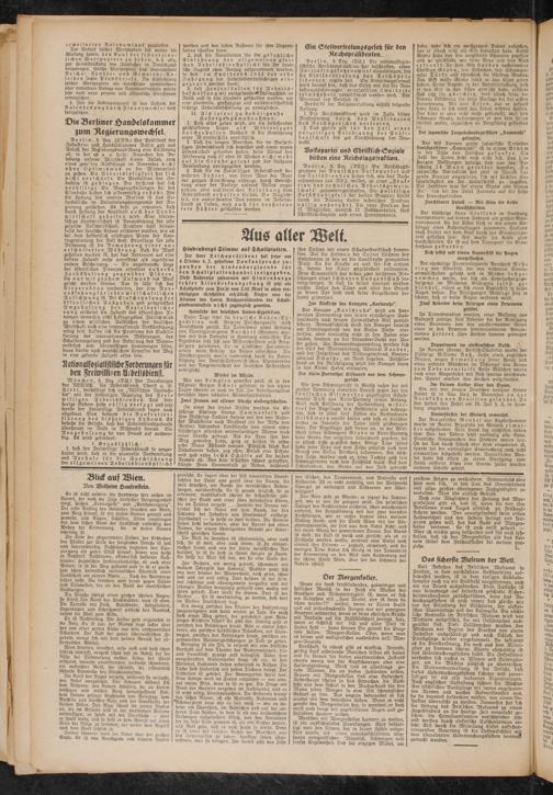 Der 43jährige Hans Steffens in Hamburg transportierte auf feinem Fahrrad ein großes Glas- transparent. An der Alster stieß er mit einem Anhänger eines Kohlenlastzuges zusammen. Steffens muß hierbei mit dem Kopf durch das Glastranspa- rent gestoßen sein: ihm wurde die Kehle glatt durchschnitten. Er ist auf dem Transport ins Kran- kenhaus gestorben.
