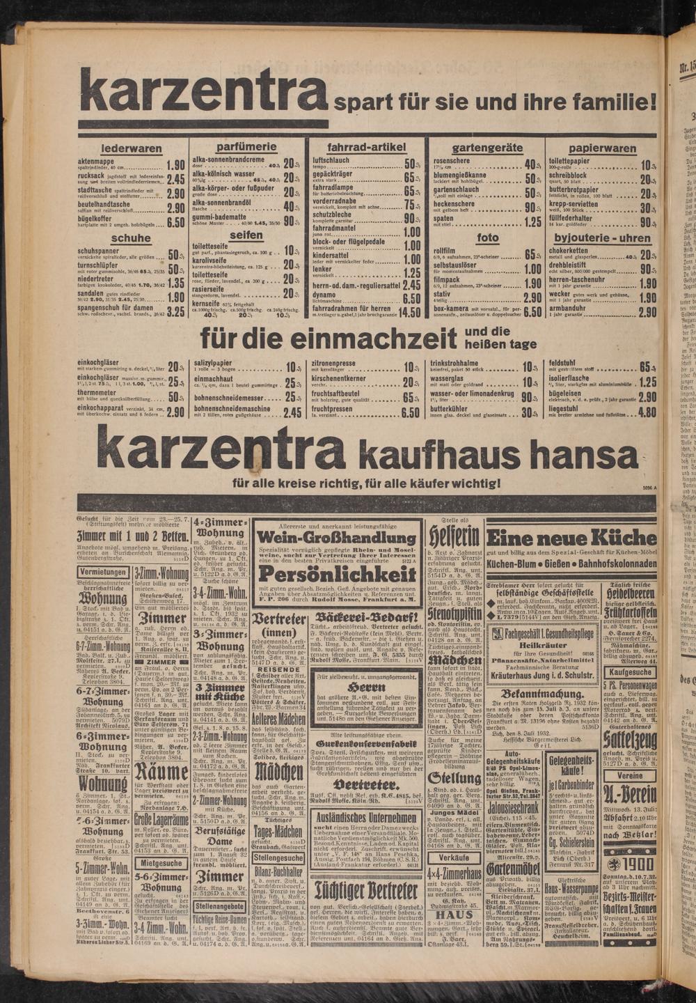 Stelle als Wo b. Arzt 0. Zahnarzt n. 3jähriger Praxis- erfahrung gesucht. Schriftl. Ang. unt. 5154O a. d. G. A. Jung., geb. Mädch., gut. Ersch., Norddeutsche, m. langj. Tätigkeit u. guten Zeugn., s. Stell, als AemWW od. Kontoristin, ev. auch als Haustocht. Schriftl. Ang. unt. 04128 an d. G. A. Tüchtiges,einwandfreies, katholisches Mädchen kann sofort in städt. Haushalt eintreten, so daß es gleichzeit. als Verk. tätig sein kann. Kond., Bäck., Caftz, Metzgerei bevorzugt. Anfrag, an Lehrer Jakob, Vertrauensmann des W.- u.Jgda. Darmstadt i. Öber-Ves- singen, Post Lich (Oberh.) Ld.[5141V