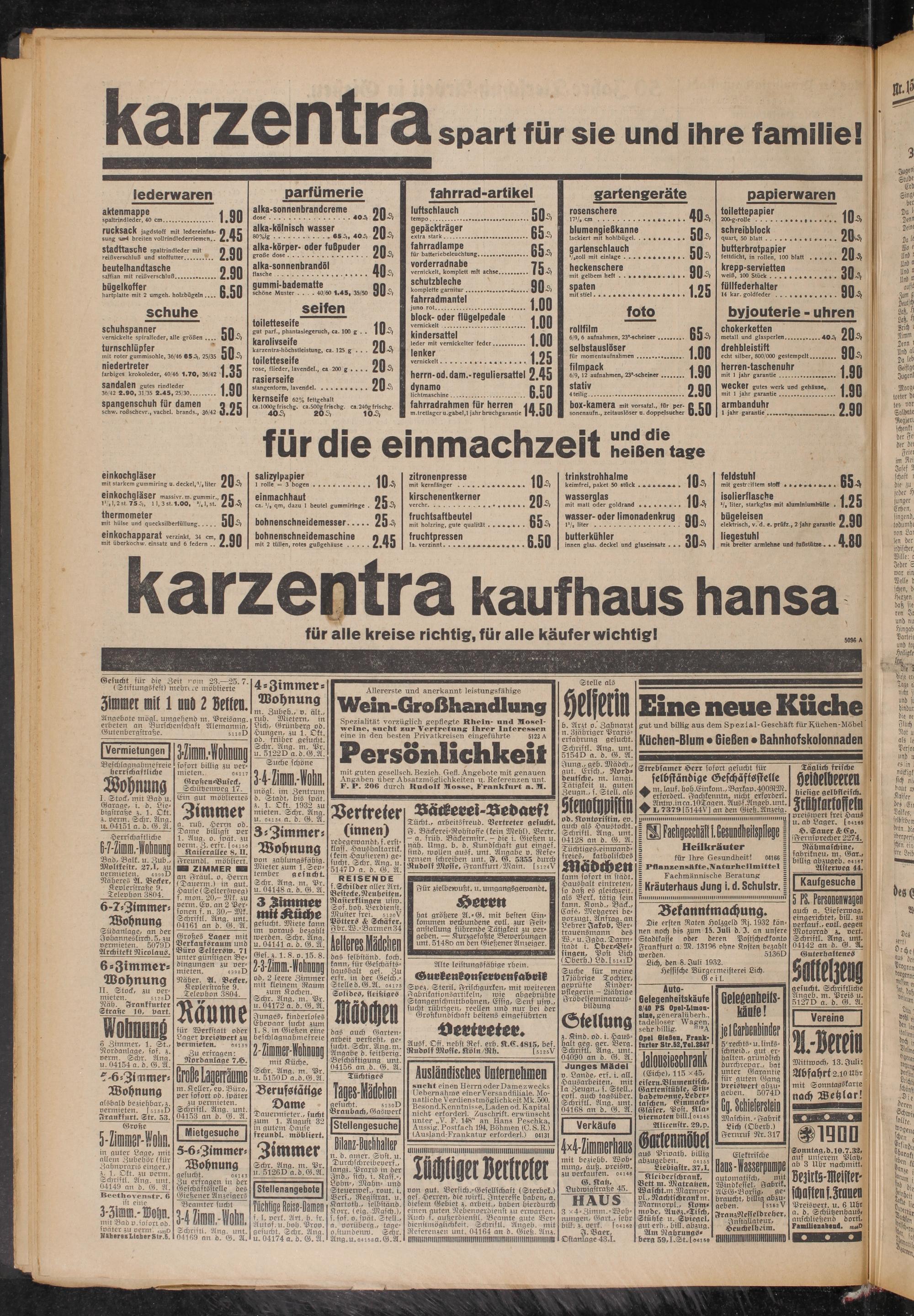 Angebote mögt, umgehend m. PreiSang. erbeten an Burschenschaft Alemannia, Gutenbergstraße. shsD