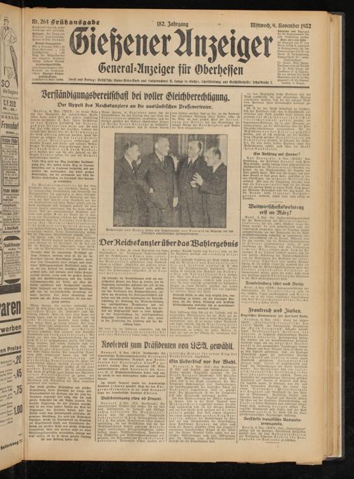 ..Das wichtigste Ergebnis der Wahl besteht darin, daß die Mehrheit von Nationalsozialisten und Zentrum unmöglich ist ohne Hilfe der Deutschnationalen Volkspartei. Ziffernmäßig ist natürlich eine Mehrheit von Kommunisten und Nationalsozialisten vorhanden Aber eine o a (i t i'b n zwischen diesen beiden extremen Gruppen erscheint doch undenkbar. Es kann vielleicht gelegentlich bei bestimmten Fragen zu einem Bündnis zwischen den beiden Fraktionen kommen, das jedoch stets nur negativer, nie positiver Natur sein dürfte