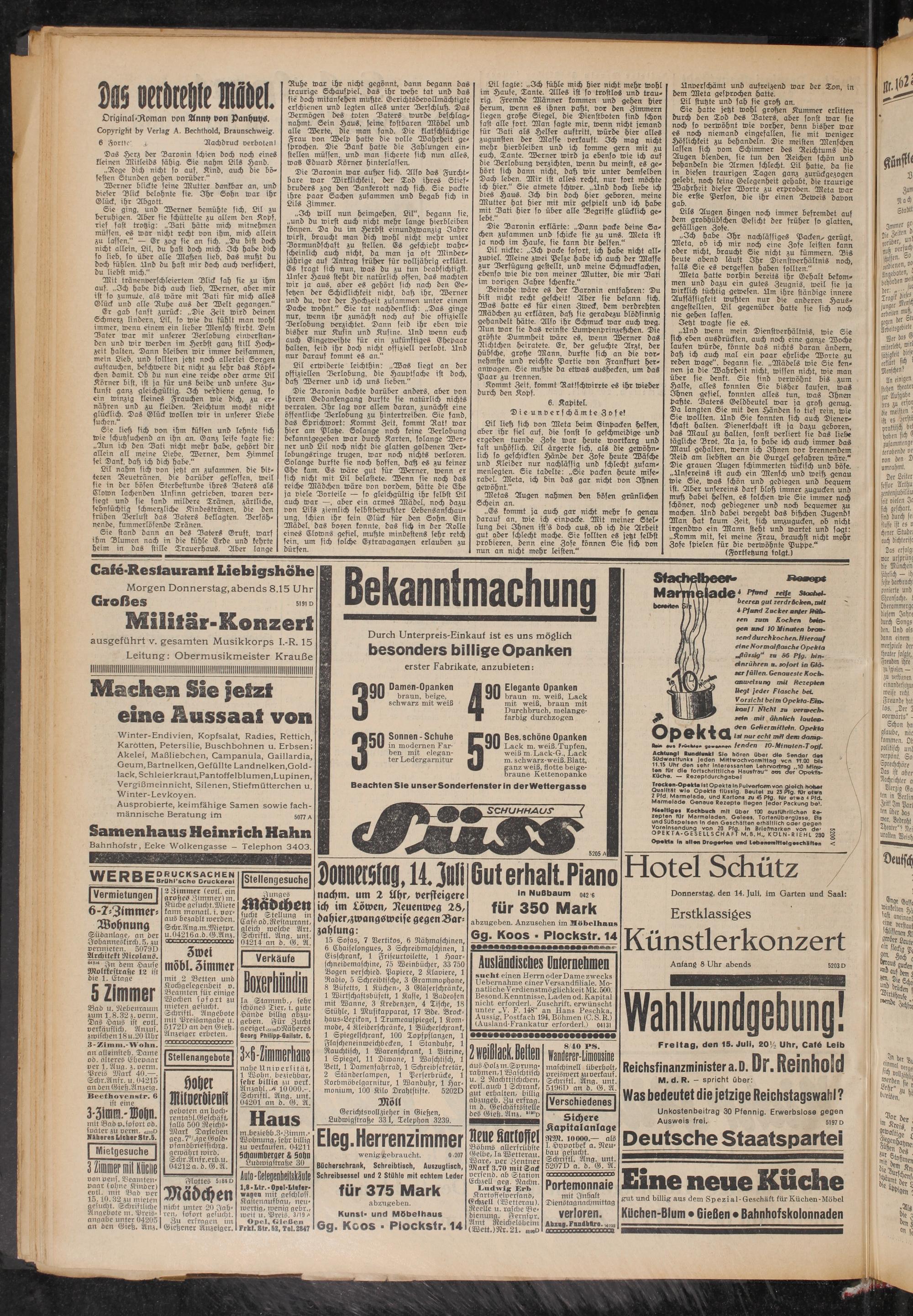Donnerstag, den 14. Juli, im Garten und Saal:
