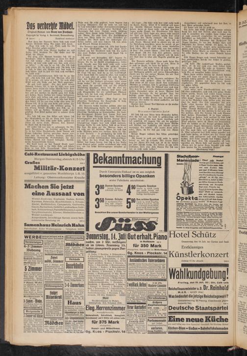15 Sofas, 7 Vertikos, 6 Nähmaschinen, 6 Chaiselongues, 3 Schreibmaschinen, 1 Eisschrank, 1 Friseurtoilette, 1 Haarschneidemaschine, 75 Weinbücher, 33 750 Bogen verschied. Papiere, 2 Klaviere, 1 Radio, 5 Schreibtische, 3 Grammophone, 8 Büfetts, 1 Küchen-, 3 Gläserschrcinke, 1 Wirtschaftsbüfett, 1 Kasse, 1 Badeofen mit Wanne, 3 Kredenzen, 4 Tische, 18 Stühle, 1 Musikapparat, 17 Bde. Brockhaus-Lexikon, 1 Trumeauspiegel, 1 Kommode, 4 Kleiderschränke, 1 Bücherschrank, 1 Spiegelschrank, 100 Topfpflanzen, 1 Flascheneinweichbecken, 1 Standuhr, 1 Rauchtisch, 1 Warenschrank, 1 Vitrine, 1 Spiegel, 11 Diwane, 1 Waschtisch, 1 Bett, 1 Damenfahrrad, 1 Schreibsekretär, 2 Ständerlampen, 1 Perserbrücke, 1 Korbmöbelgarnitur, 1 Wanduhr, 1 Harmonium, 100 Kilo Drahtstifte. 5202D
