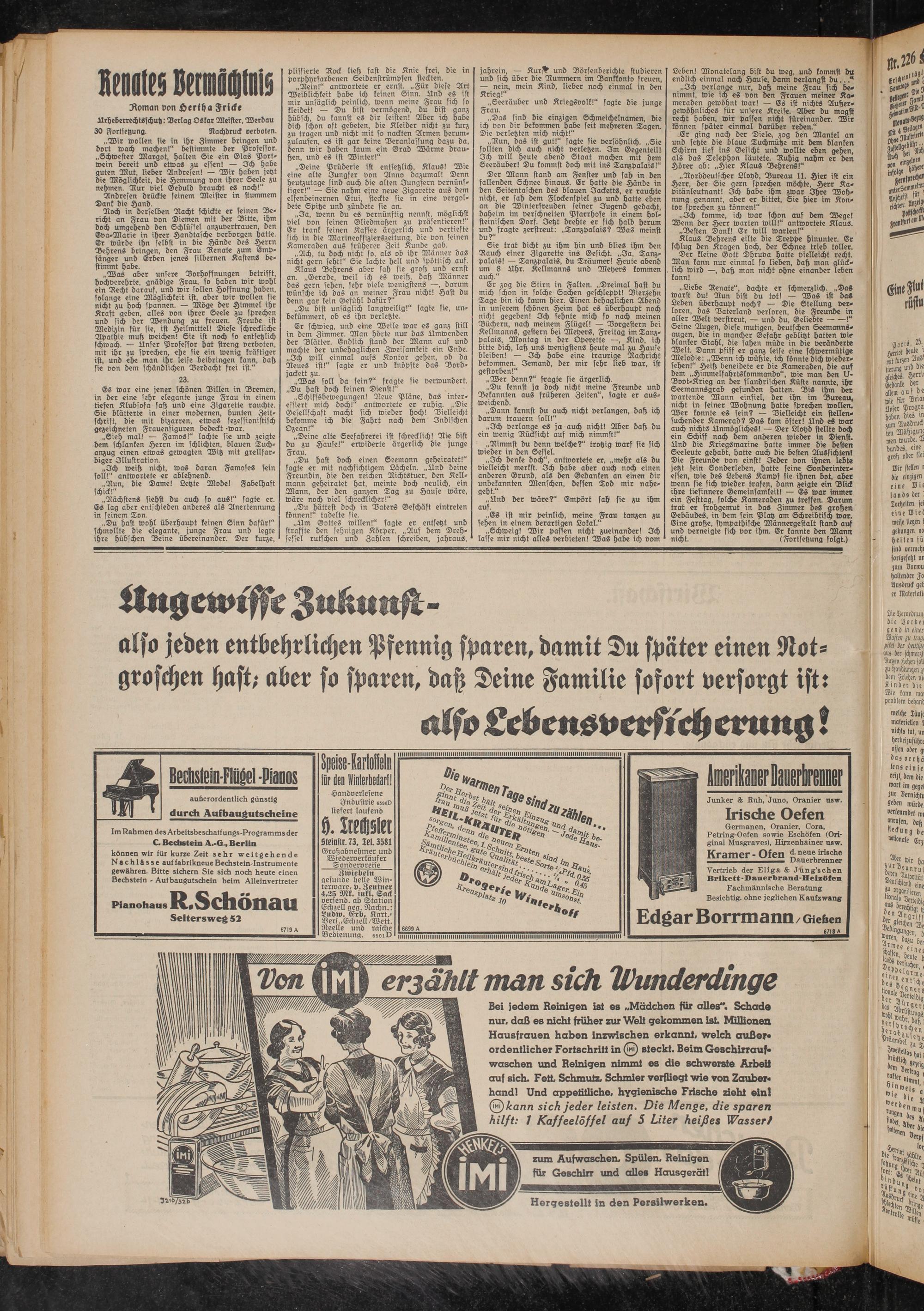 „Liebe Renate", dachte er schmerzlich. „DaS warst du! Run bist du tot! — Was ist daS Leben überhaupt noch? — Die Stellung verloren, das Vaterland verloren, die Freunde in aller Welt verstreut, — und du, Geliebte--!"