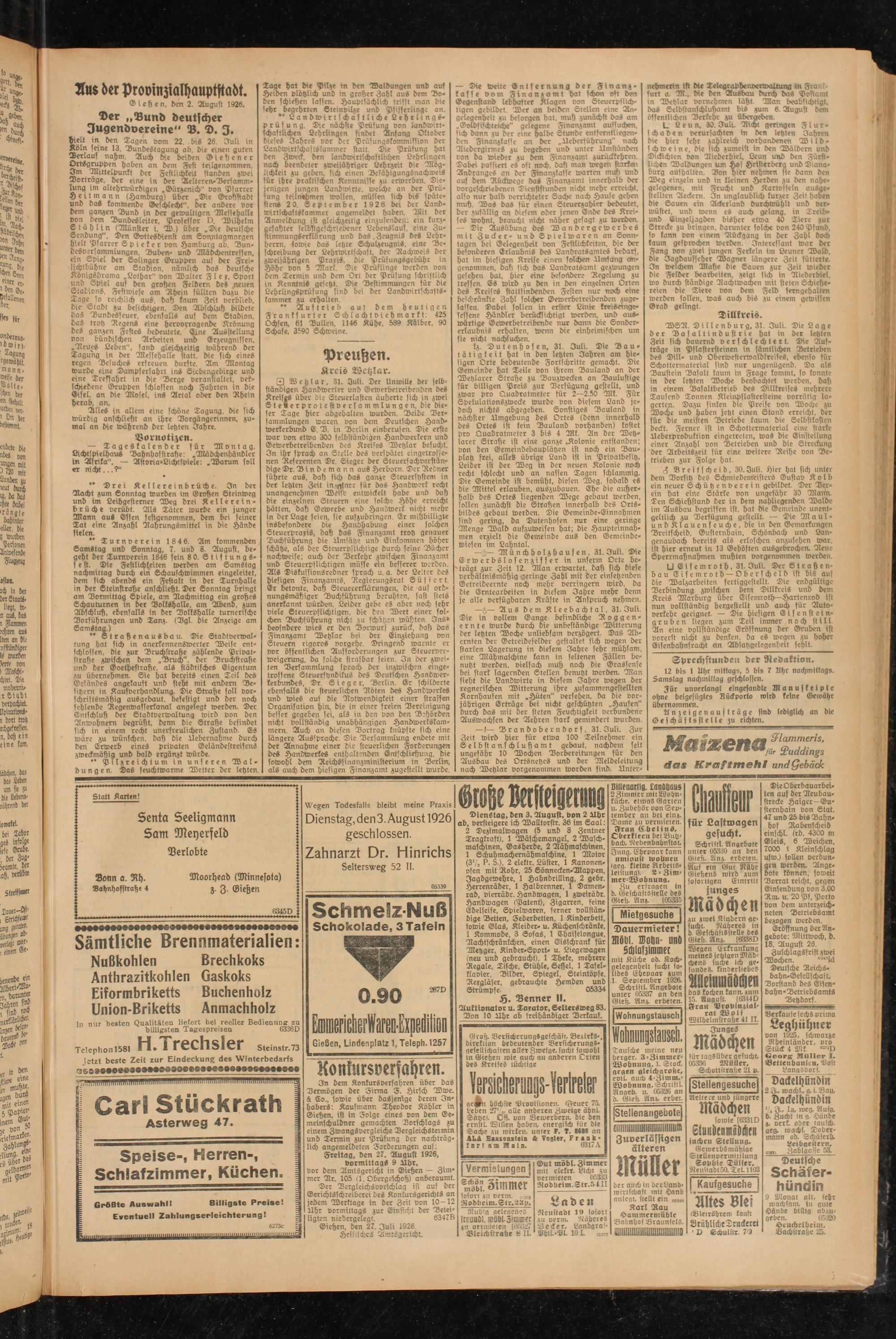 Wegen Todesfalls bleibt meine Praxis Dienstag, den 3. August 1926 geschlossen.
