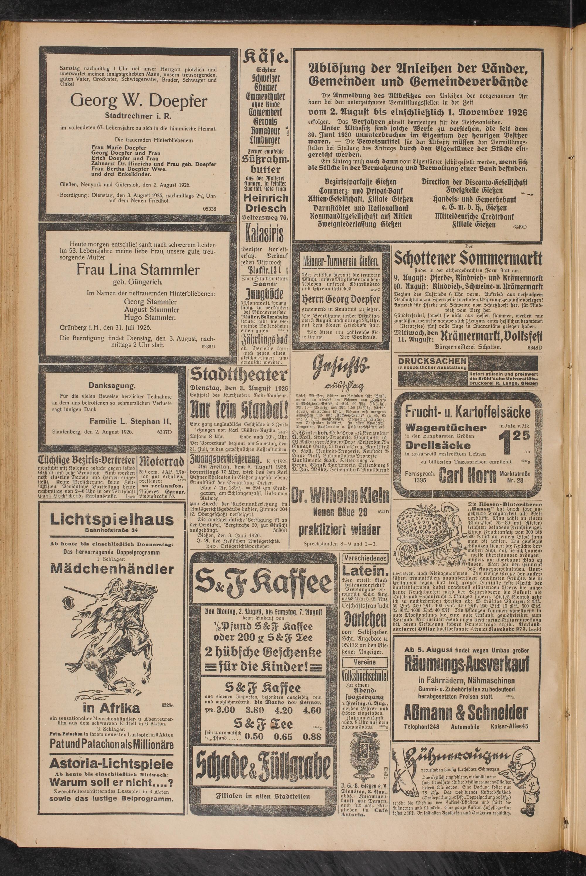 Gießen, den 3. Juni 1926.