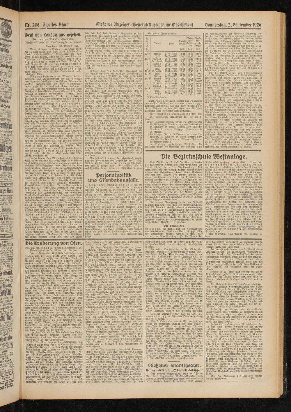 Nr. 205 Zweites Blatt Gießener Anzeiger (General-Anzeiger für tvberheffen) Donnerstag, 2. September (926