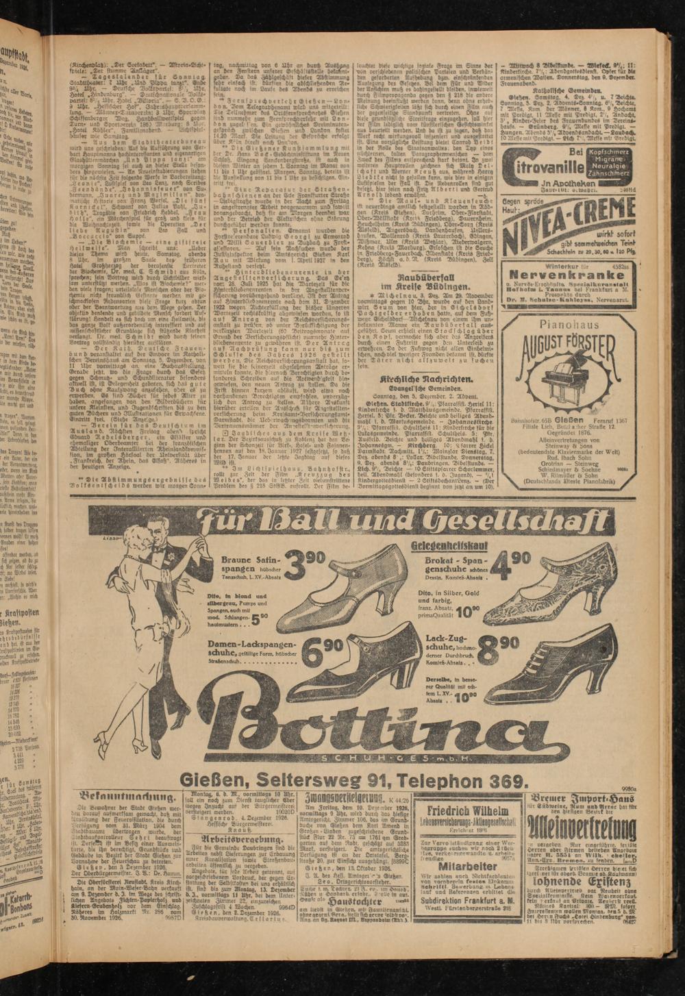 Gießen. Stadtktrche. 9',',: Psarrassist. Hertel 11: kinderlirche f. d. Matthäusgemeinde. Pfarrassist. Hertel. 5: Pfr. Decker. Beichte und heiliges Abend- mahl f. d. Martnsgemeinde - Zohannestirche 9'/,: Pfarrassiit. Schultheis 11: Kinderkirche für die Lukasgemeinde. Pfarrassist. Schultheis. 5: Pfr. Ausfeld. Beichte und heiliges Abendmahl f. d. Iohannesgm. - Kirchberg. 10: Pfarrer Hickel Darmstadt Aachmitt. 1'/,: Mainzlar Dienstag, 7. Dez. abends 8 ,: Lollar. Bibelstunde. Donnerstag, 9. Dez. abends 8'/,: Daubringen. Bibelstunde. — Lich. 9% Beichte — t0 Stiftspfarrer Schorlemmer, heil. Abendmahl (besonders f. d- Jugend). — */tl Kindergottesdienst — 2 StiftsdechantLenz. - (Der Dormittagsgottesdienst beginnt von jetzt an um 10).