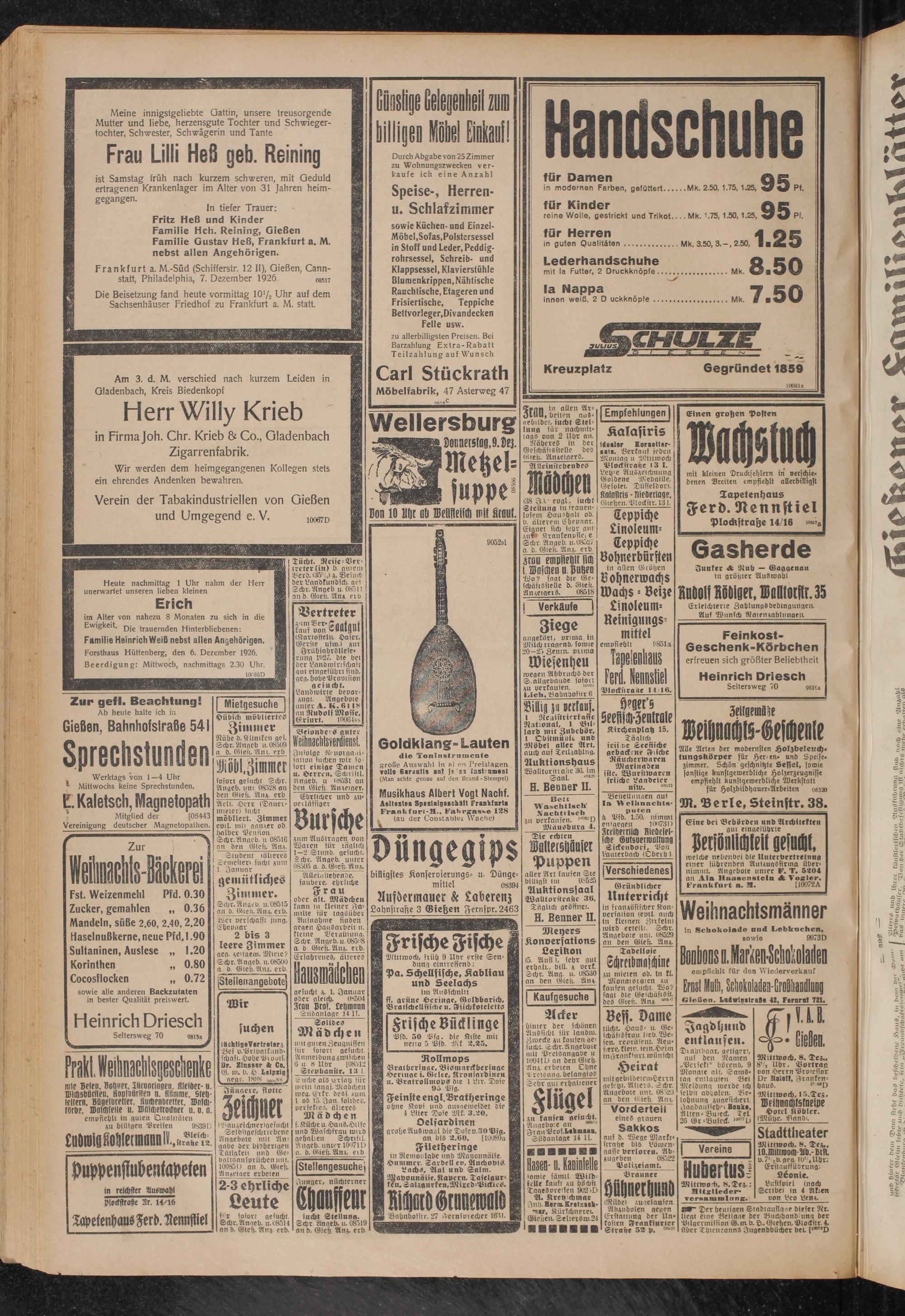 Mu enrnnenit firn I Baifflen u wi Wo? sagt die Geschäftsstelle d. Giest Anzeigers. 08518 I Verkäufe I