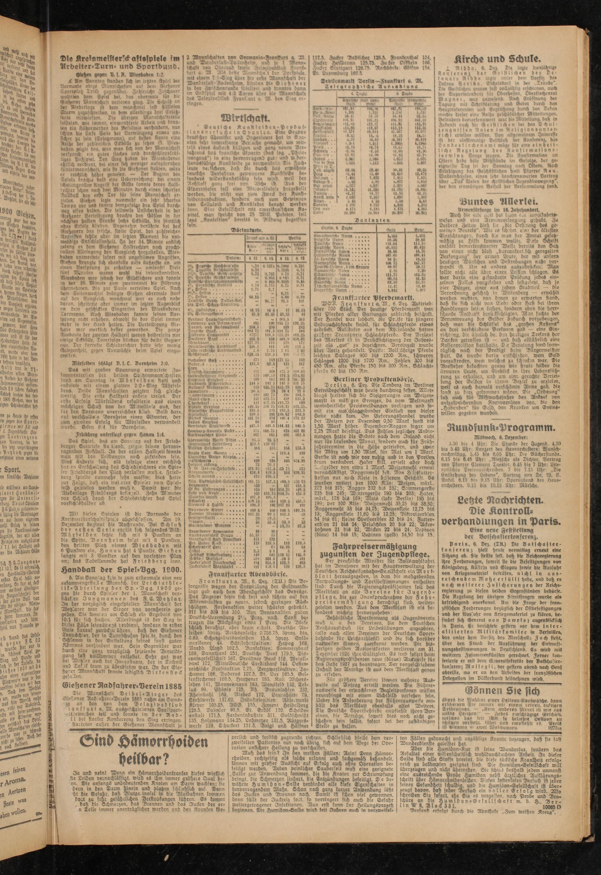 Gießen gegen X). f. B. Wirsbaben !;2