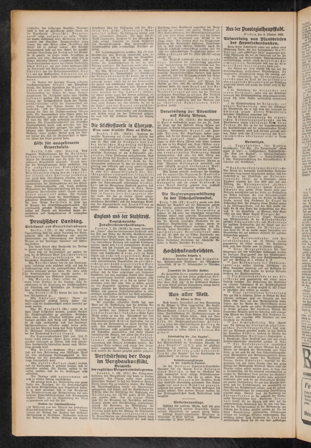 Berlin, 7.Oft, 12 Uhr mittags. Auf der Tagesordnung steht die zweite Beratung des Gesetzentwurfs über die Bereitstellung von weiteren Staatsmitteln zur Urbarmachung von staatlichen Mooren in den Provinzen Hannover und Schleswig-Holstein.