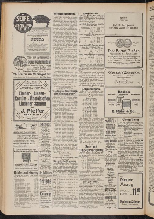 Nächsten Montag, den 15. März 1926, sollen im Dillinger Gemeinbewald, Anfang 10 Uhr, aus den Distrikten Buchwald und Schlaghaus: