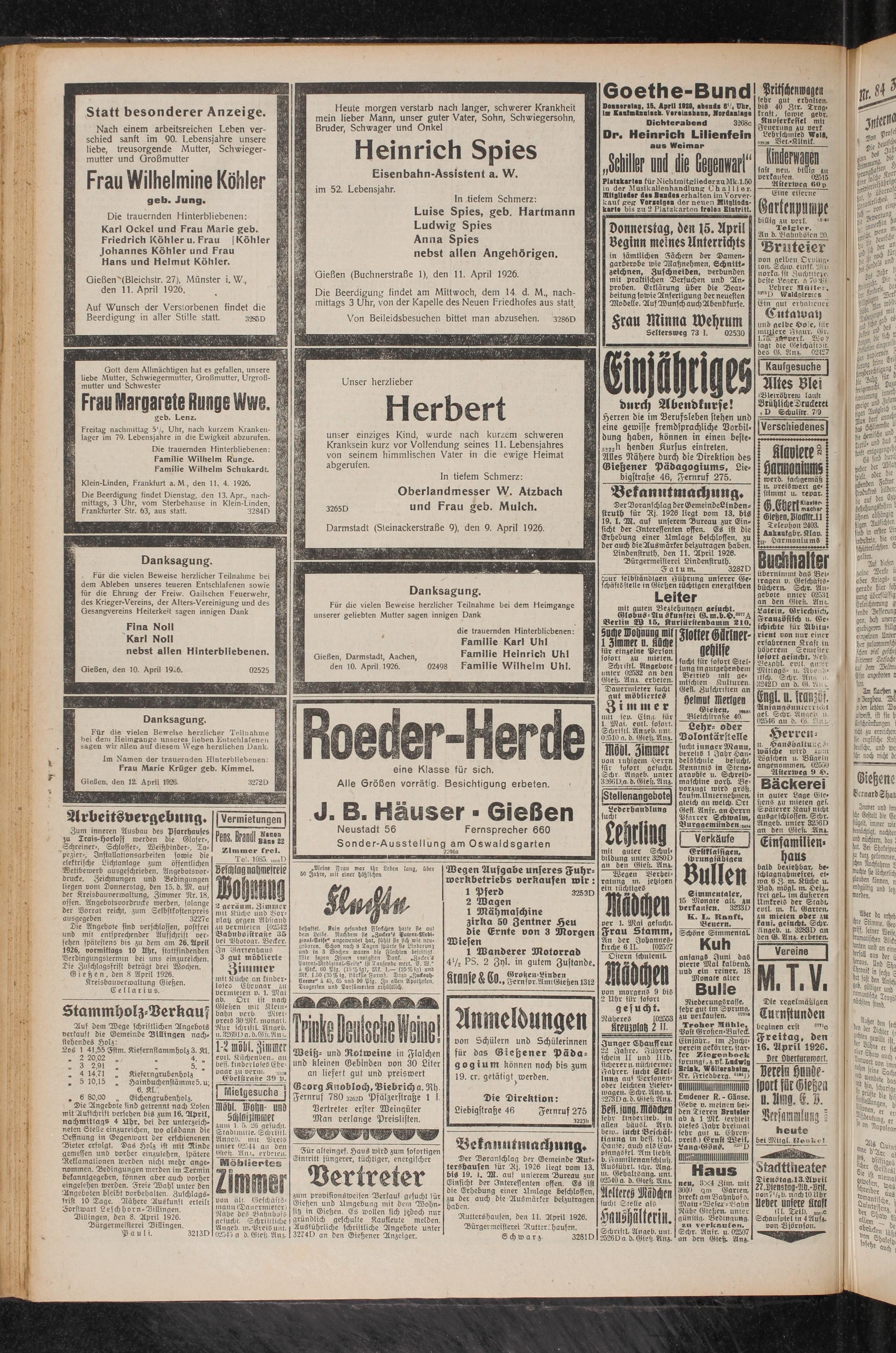 Gießen, den 12. April 1926.