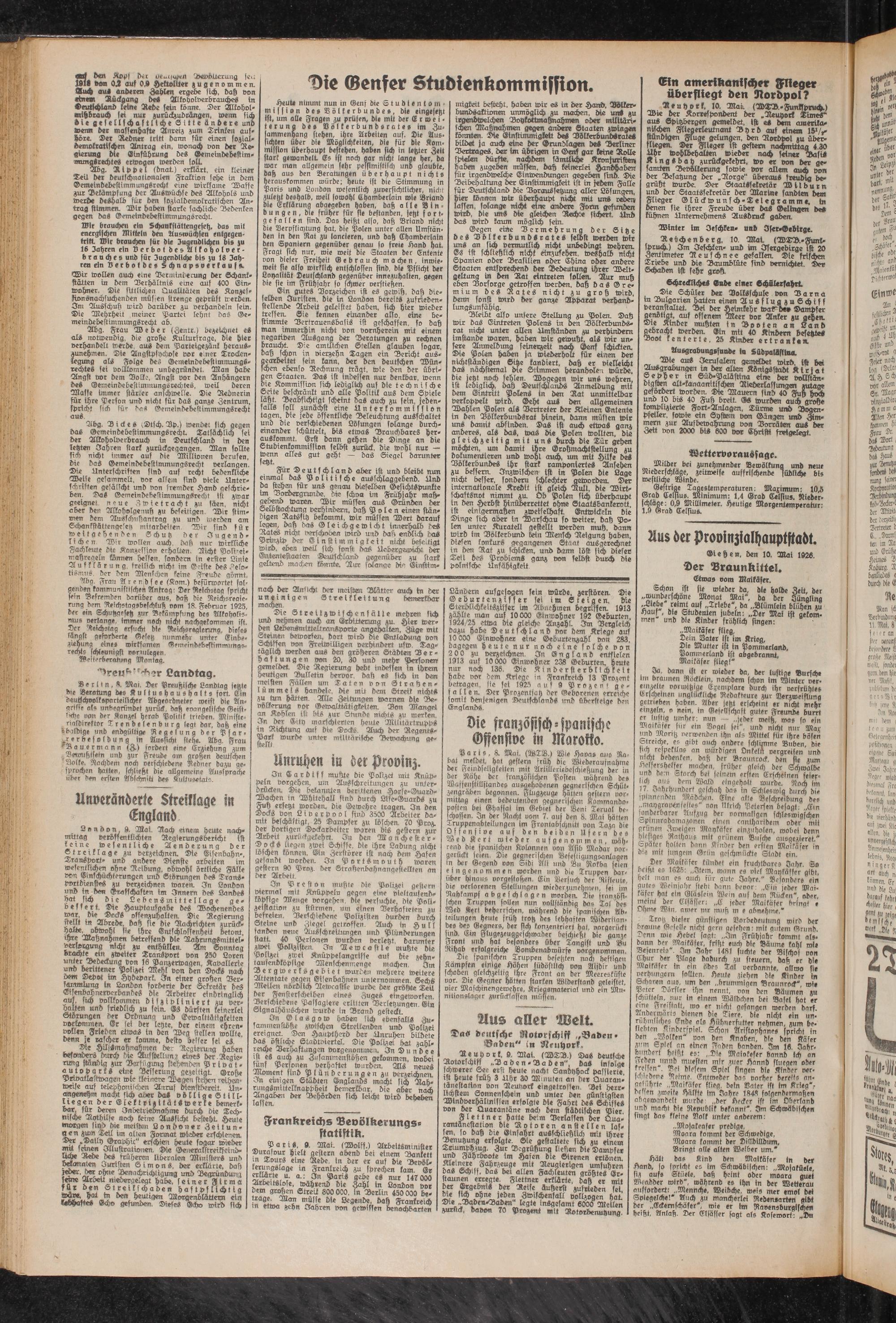 Poris, 8. Mai. (WTB.) Wie Haoas aus Rabat meldet, ha, gestern früh die Wiederaufnahme der Feindseligkeiten mit Artilleriebeschießung der in der Nähe der französischen Posten während des Waffenstillstandes ausaehobenen gegnerischen Schüt» zsngräben begonnen. Flugzeuge hä mittag einen l posten bei Ghafsai in schossen. In der Nacht vom 7. auf den 8. Mai hätten Truppenabteilungen im Frontabschnitt von Toza die Offensive auf den beiden Ufern des Wed Kert wieder ausgenommen, wäh» rend die spanischen Kolonnen von Asib Modar vor- aorückt seien Die gemierischen Besesiigungsanlagen in ter Gegend von oibi Ali und Bii Rokba seien eingenommen worden und die Truppen dar» über hinaus vorZestoßen. Cm Versuch der Nifleute, die verlorenen Stellungen wiederzunehmen, sei im Nahkampf abgeschlagen morden. Die französischen Truppen sollen nun vollständig das Tal des Wed SM beherrschen, während die spanischen Abteilungen heute früh trotz des lebhaften Widerstandes des Gegners, der sich konzentriert hat, vorgerückt smd. Cm Flugezeuggeschwader beschießt die ganze Front und hat besonders über Tangist und Bu Rihab erfolgreiche Bombenabwürfe vorgenvmmen.