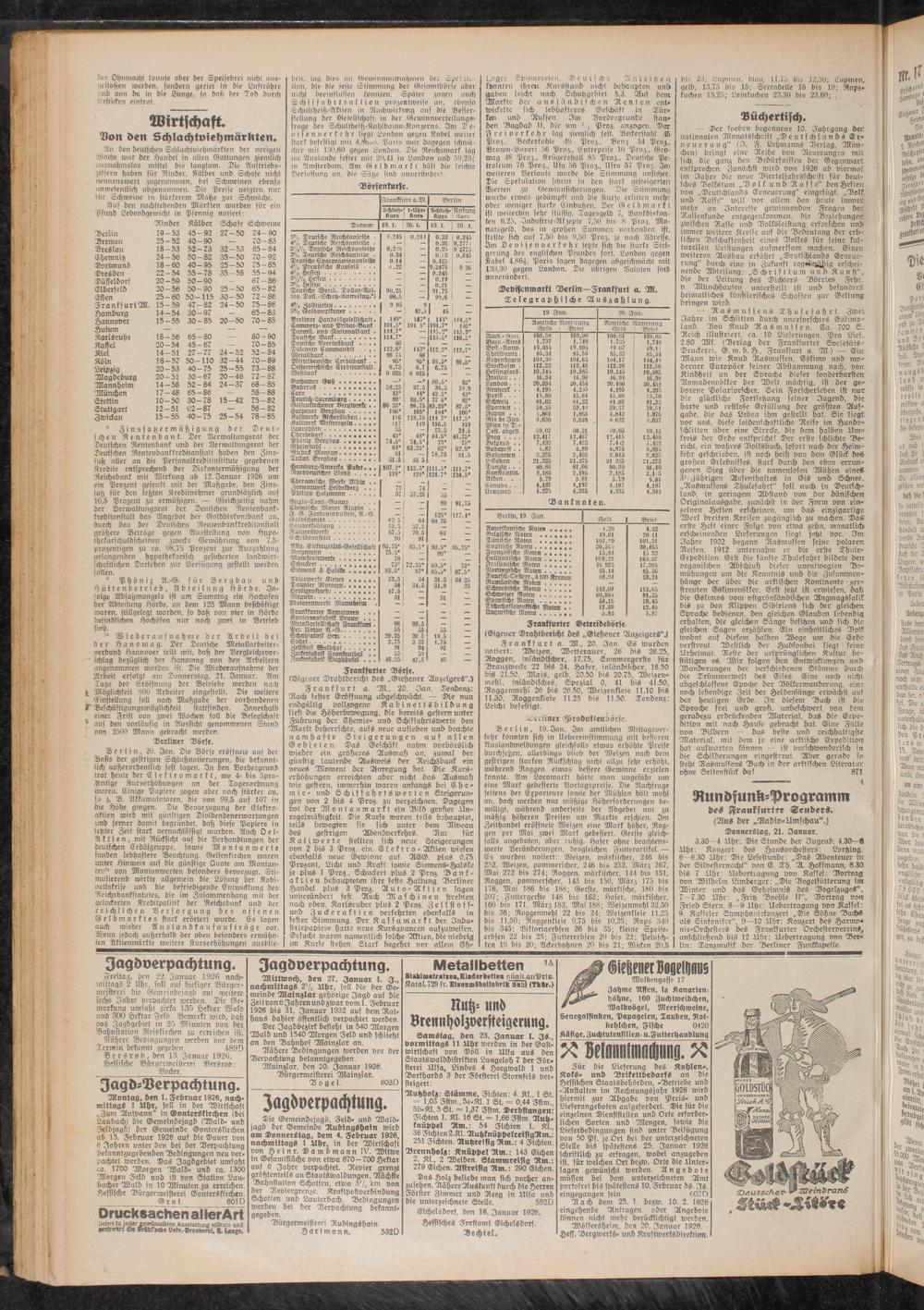 (Aus der „Radio-Amsch<iu".) Donnerstag, 21. Januar.