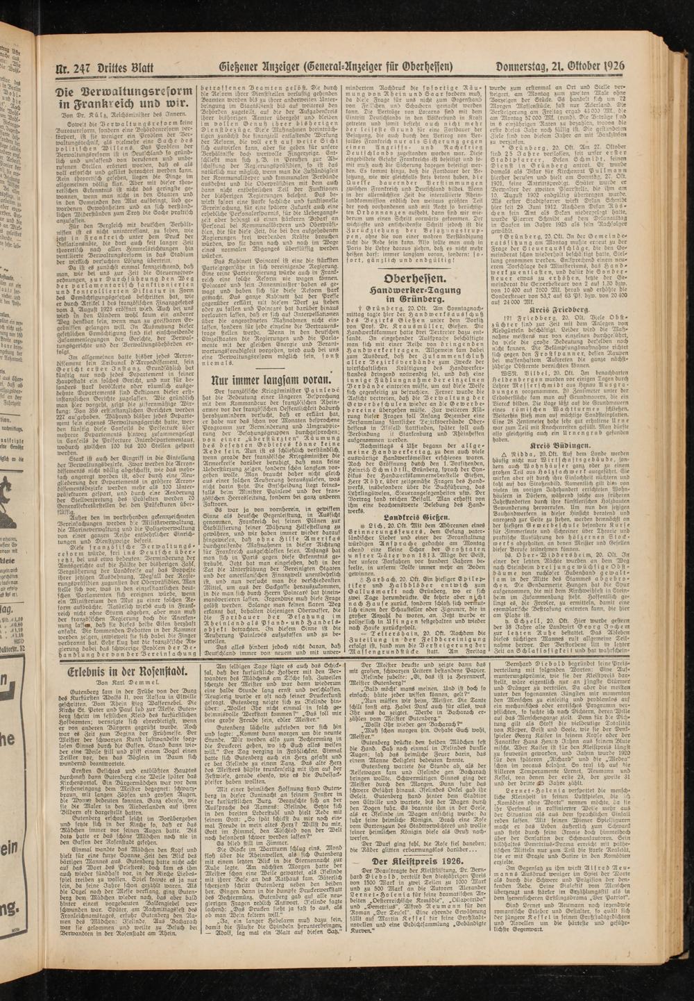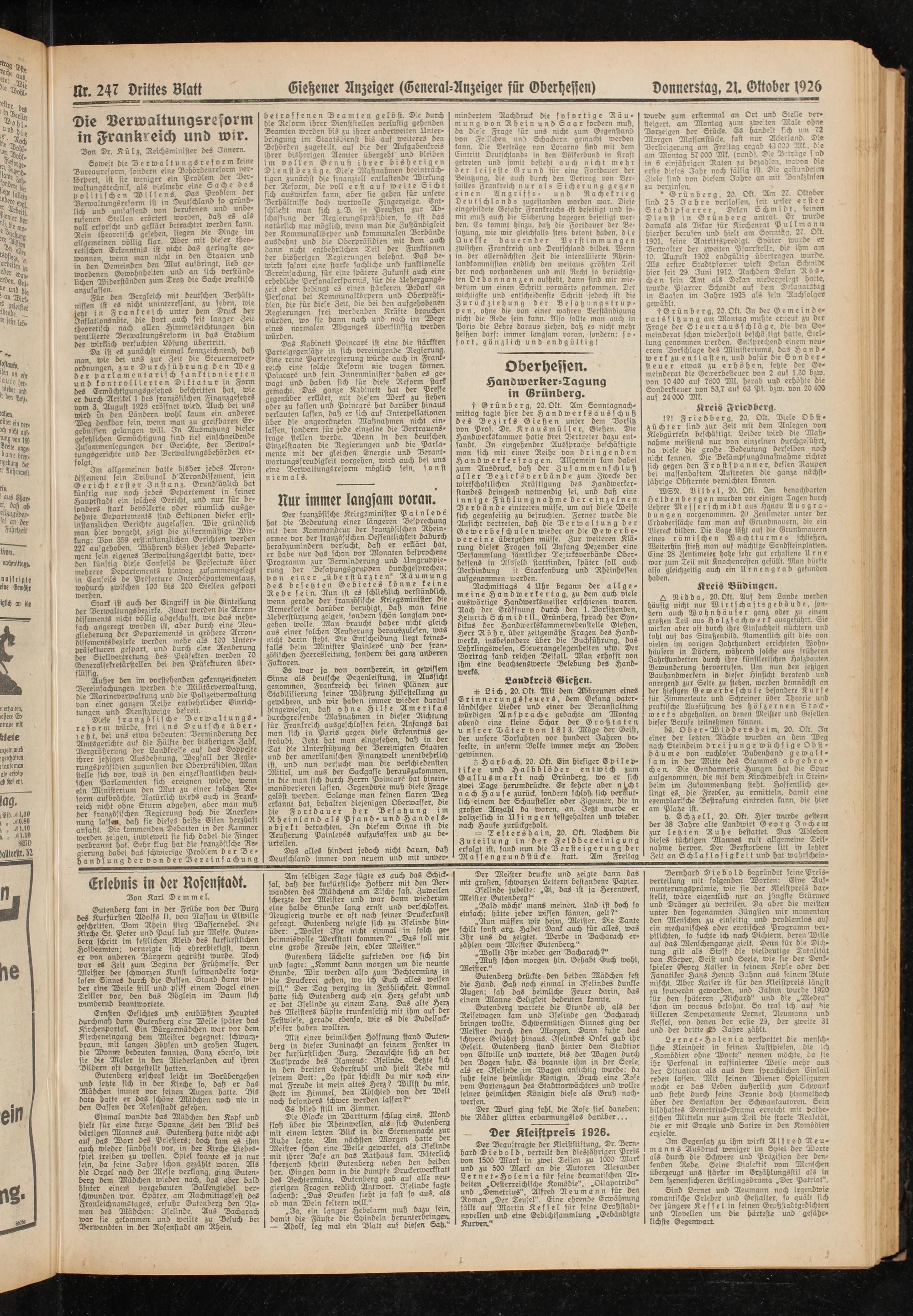 Nachmittags 4 IHjr begann der allgemeine Handwerkertag, zu dem auch viele auswärtige Handwerksmeister erschienen waren. Nach der Eröffnung durch den 1. Vorsitzenden, Heinrich Schmidt II., Grünberg, sprach der Syndikus der Handwerkskammernebenstelle Gießen, Herr Röhr, über zeitgemäße Fragen des Handwerks, insbesondere über die Buchführung, das Lehrlingswesen, Steuerangelegenheiten usw. Der Vortrag fand reichen Beifall. Man erhofft von ihm eine beachtenswerte Belebung des Hand- werks.