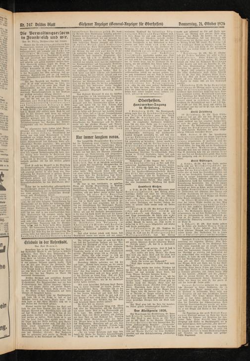 5 Harbach, 20. Ott. Ein hiesiger Epileptiker und Halbblöder entwich zum Gallusmarkt nach Grünberg, wo er sich zwei Tage herumdrückte. Er kehrte aber nicht nach Hause zurück, sondern schloß sich vermutlich einem der Schausteller oder Zigeuner, die in großer Anzahl da waren, an. Ietzt wurde er polizeilich in 11 fi ngen festgehalten und wieder nach Hause zurückgeholt.