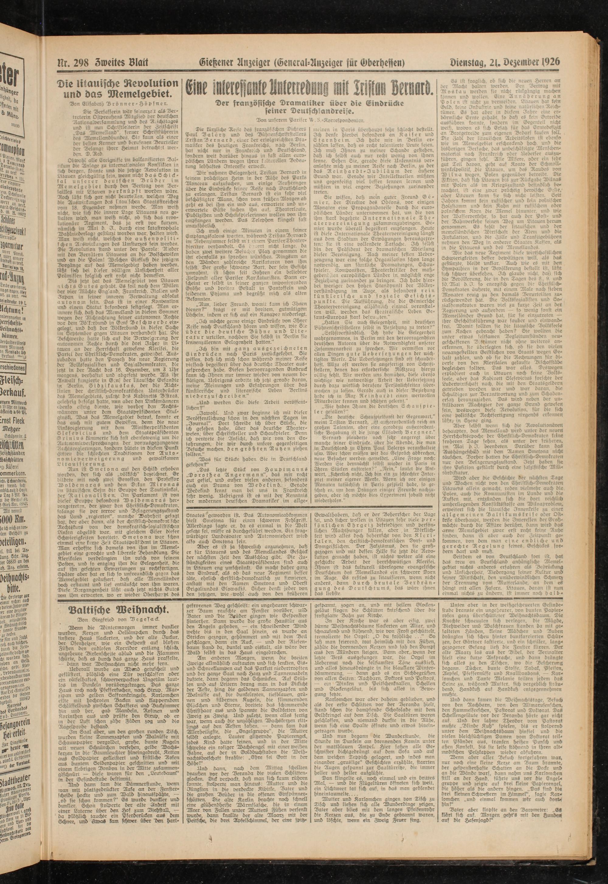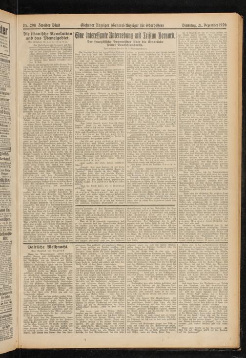 Dienstag, 21. Dezember 1926
