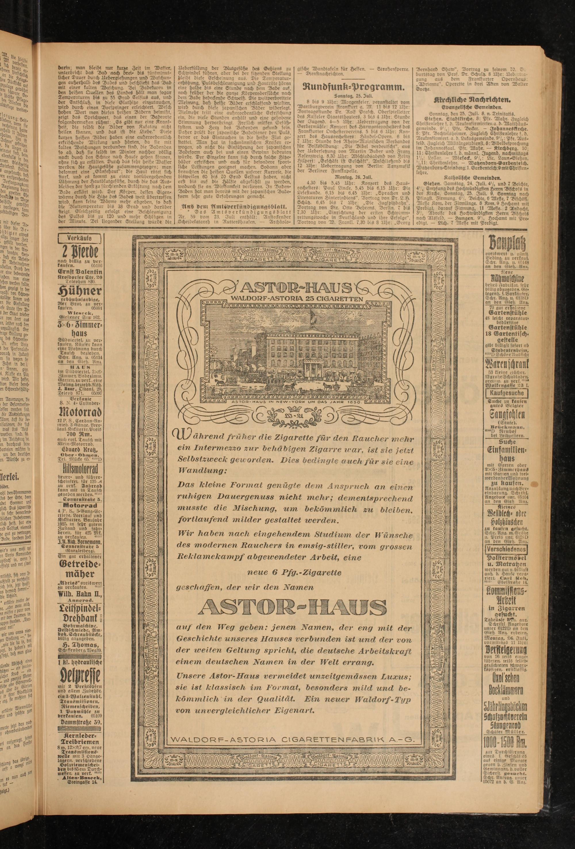 • Das Amtsverkündigungsblatt Ar. 59 vom 23. Juli enthält: Ansteckender Scheidekatarrh in Ruttershausen. — Archäolo