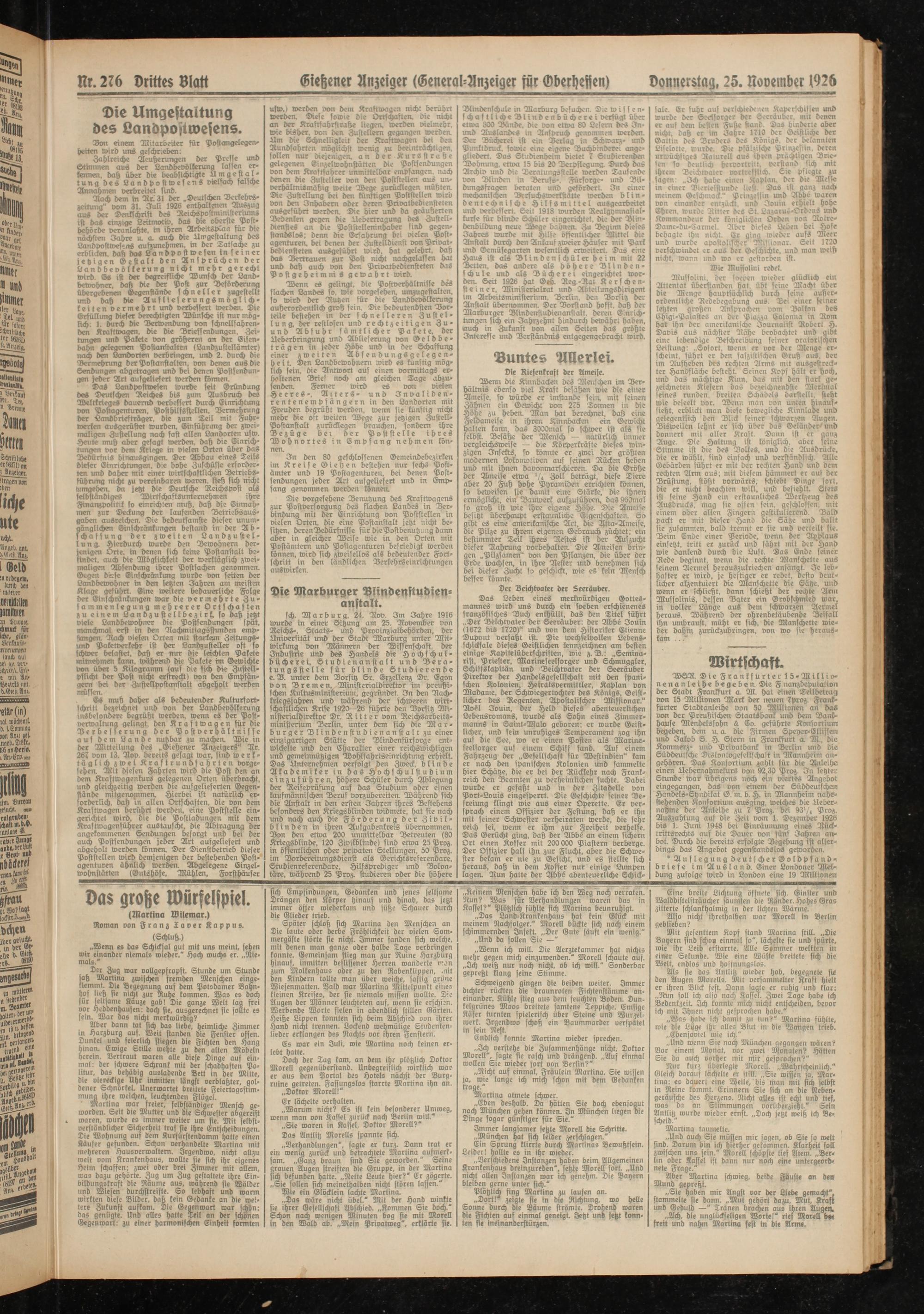 Giehener Anzeiger (General-Anzeiger für Gberhessen) Donnerstag, 25. November 1926