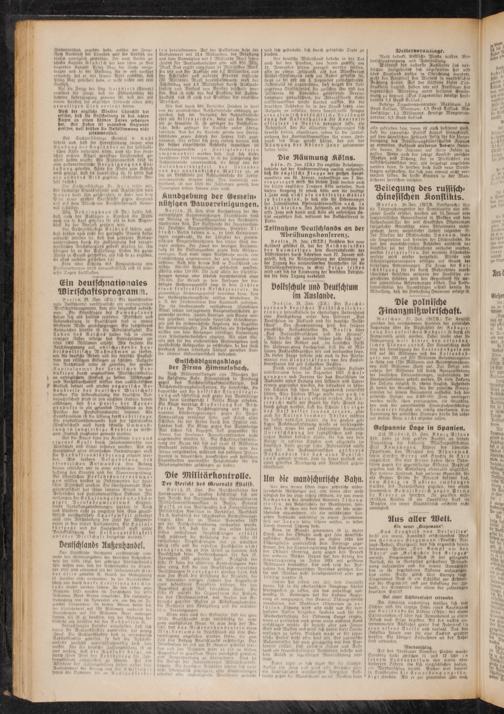 Aus hem fernen Osten liegen zahlreiche wider spicchende Meldungen not, VON denen aoev wohl leblglid) die bic Lage richtig (d)ilberti, die von einein Nachgeben Vcs chinesischen Generals Tscha n g tso ' lin, bes Beherrschers ber Mandschurei, sprechen. Das ist schon aus bem Grunde als sehr wahr scheinlich attzuNehtnen. als ein militärifches Vor« gehen Vuftlaubs Unbedingt zu cihem Ztisammen stutz mit Japan hätte führen müssen, in dessen Dienst General 1 schling stellt.