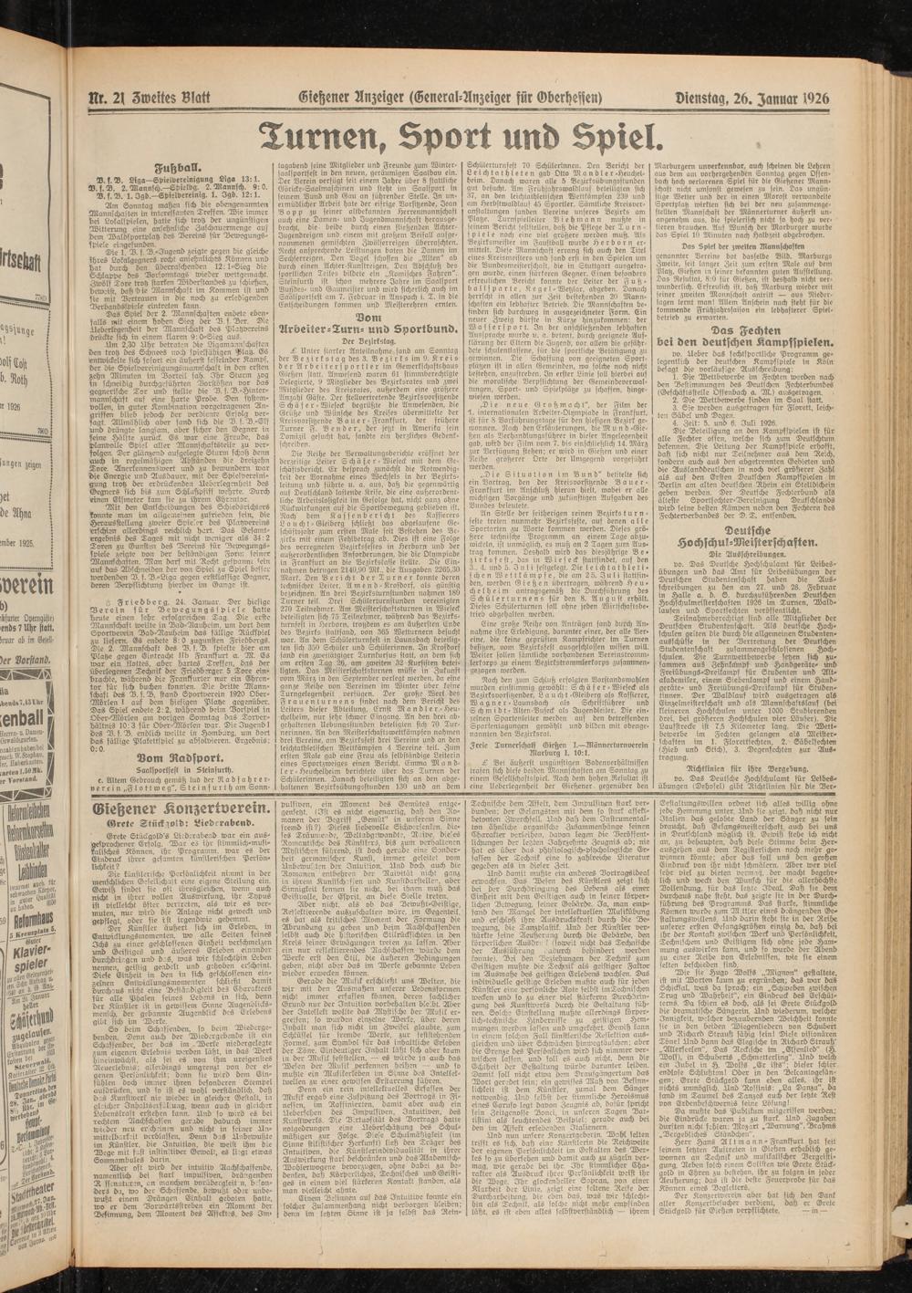 Dienstag, 26. Januar 1926