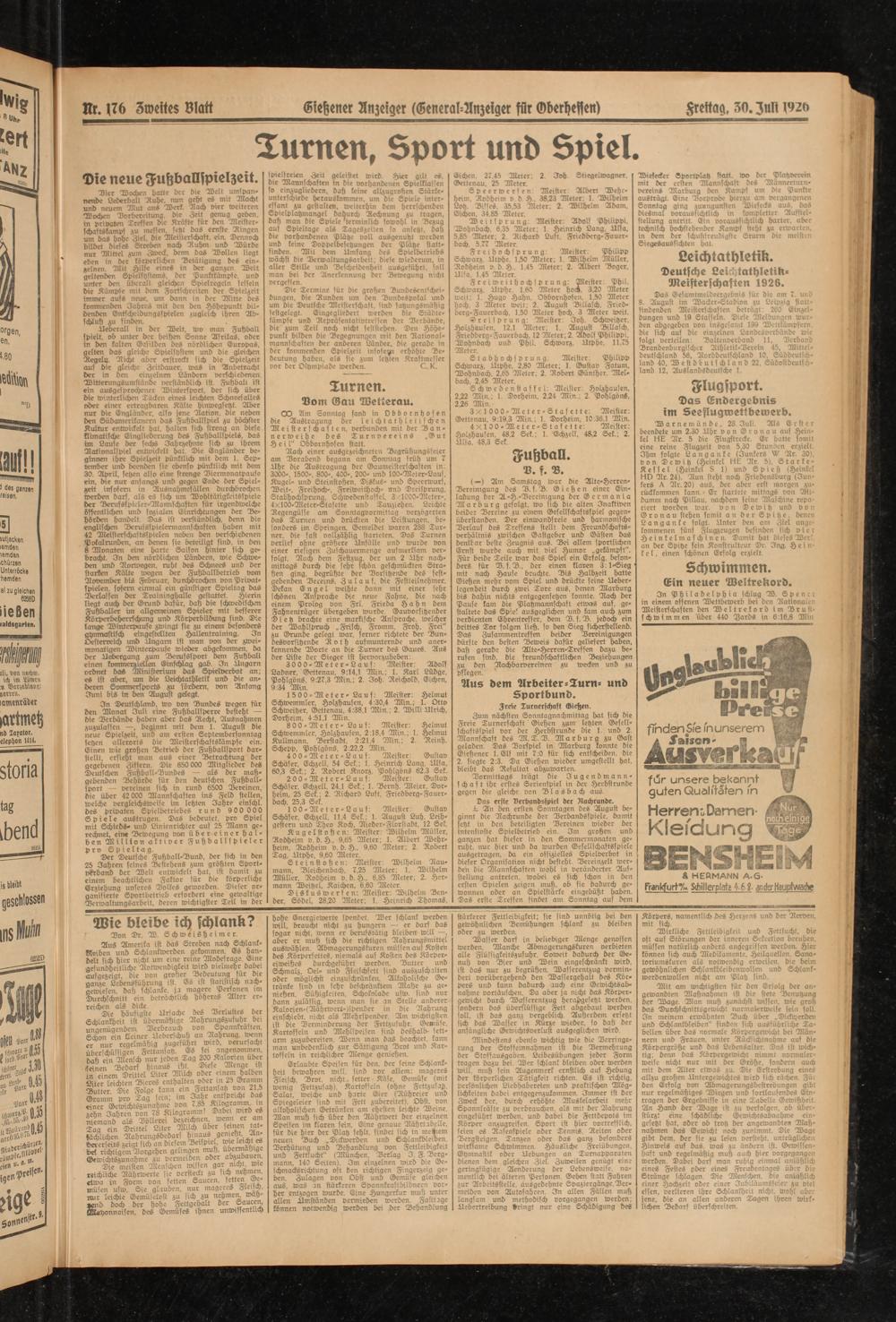 Nr. 176 Zweites Blatt Gießener Anzeiger (General-Anzeiger für Gberheffen)Zrettay, 30, Zull 1920