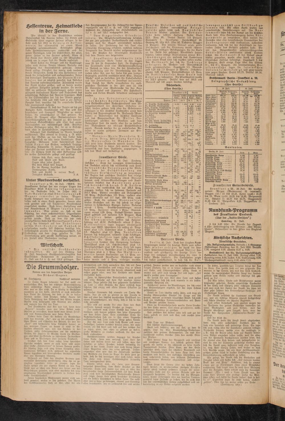 3fr. Religionsgemelnde. Gottesd. i. d. Synagoge (Südanlage). Samstag, den 31. Juli 1926. Dorabd. 7.30, morgens 8.30, abends 8.25 u. 9.05.