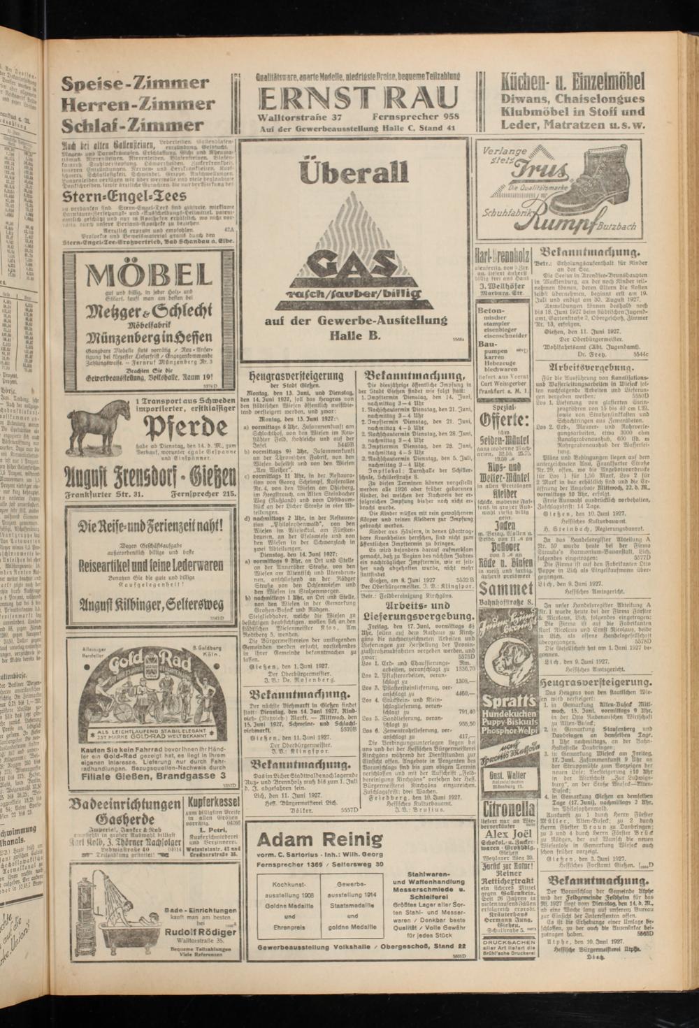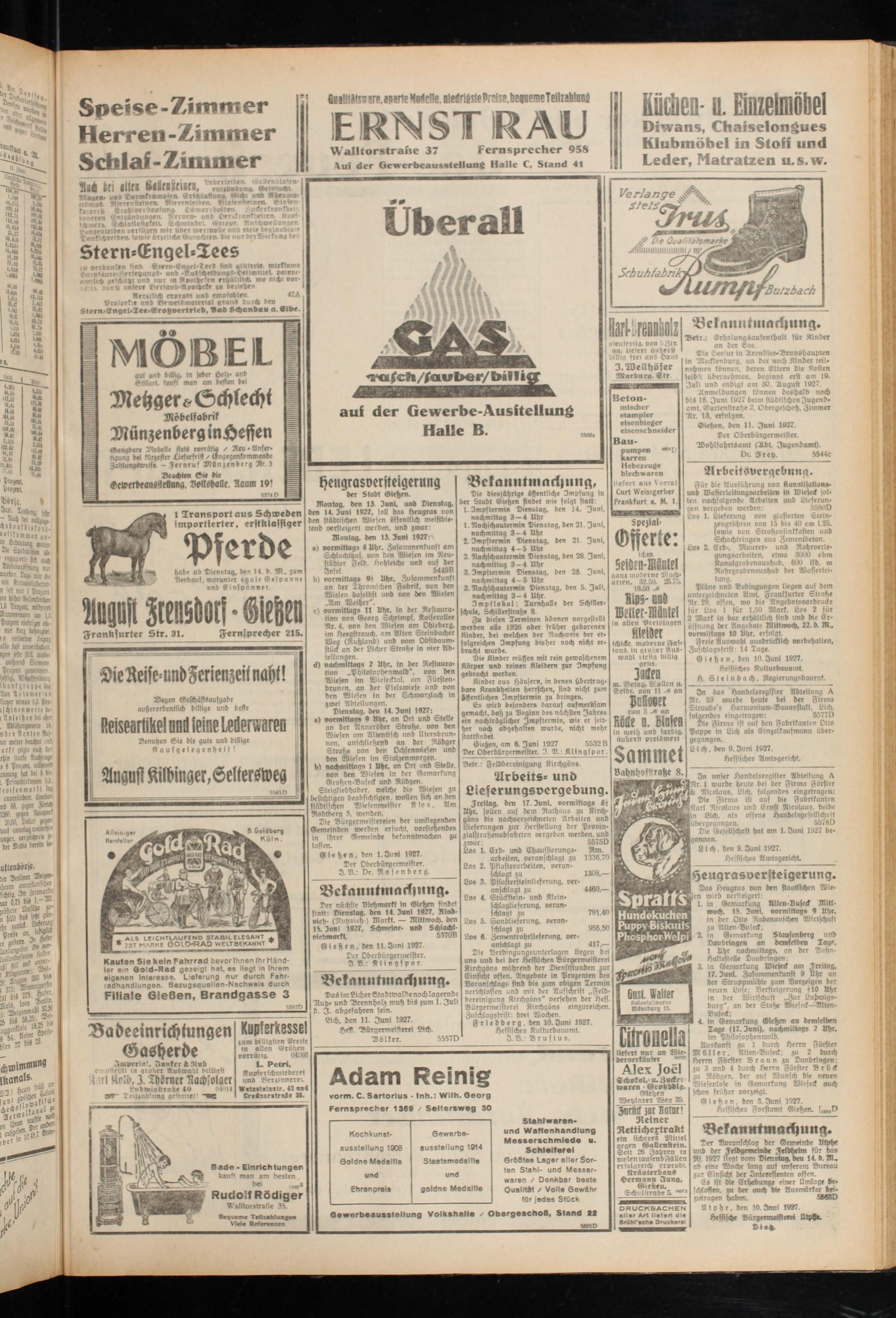 Ter nächste Vichmarkt in Giehen hnbet statt Dienstag, den 14. Joni 1927. Rindvieh- lNutzvieh ) Markt. — Mittwoch, den 15.3ani 1927, Schweine- und Schlacht- 55708