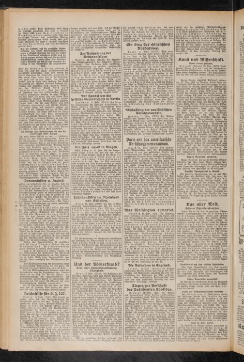 ebenso wie der vorherige FlottenabrüstungS- vorschlag der praktisch brauchbare Versuch eines Weitblickenden Politikers, die allmähliche allgemeine Abrüstung, der bisher nurDeutschland und seine ehemaligen Verbündeten restlos nachgekommen find, auch bei den anderen Staaten zu fördern. Die einfeitige Abrüstung Deutschlands gegenüber feinen biS an die Zähne bewaffneten Rachbarn widerspricht vollkommen dem Gerecktigkei sgefühl. aus dem heraus das amerikanische Volk feine Unterschrift zu dem Versailler Vertrag verweigert hat.
