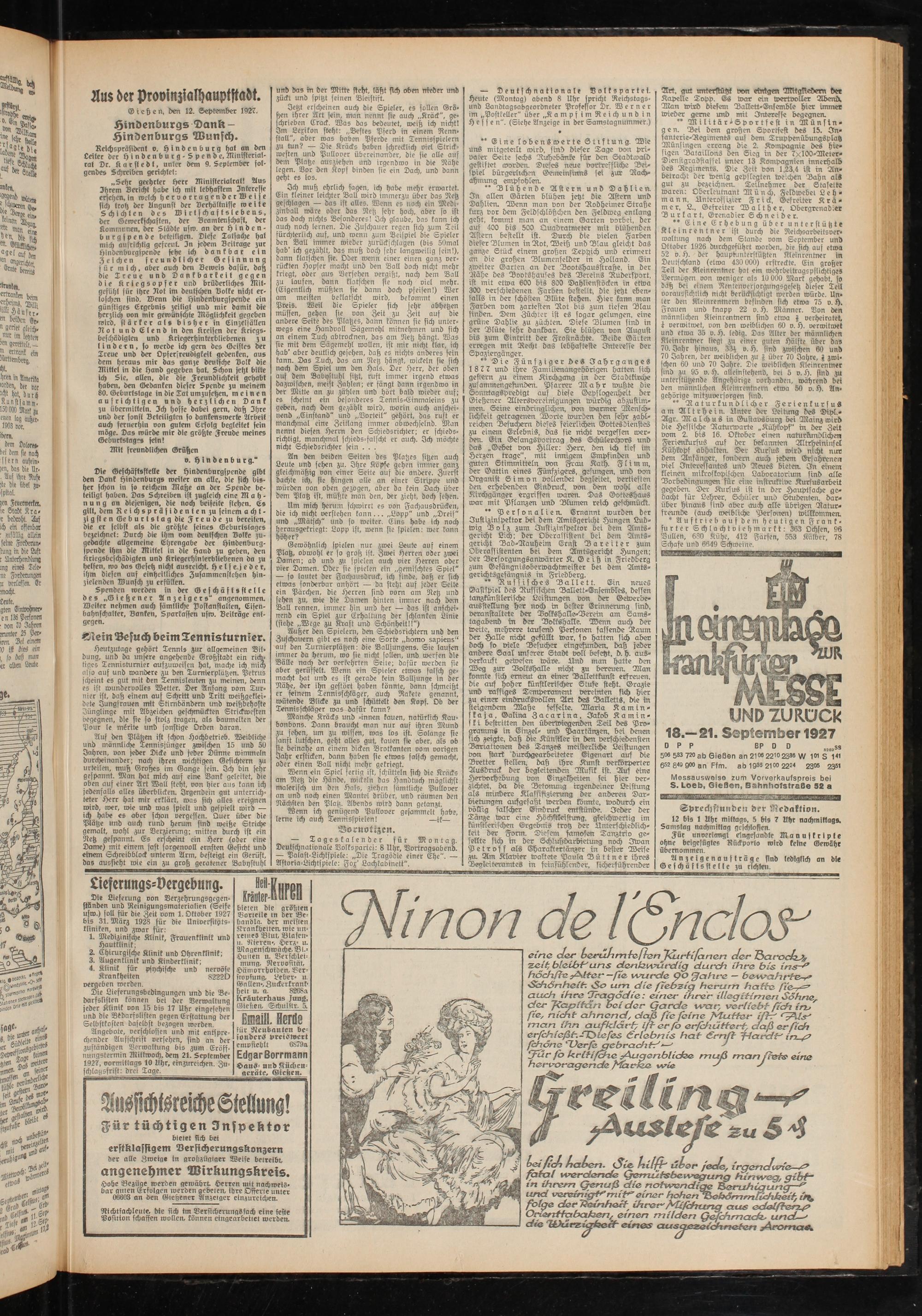 erstklassigem Dersicherungskonzern der alle Zweig, in großzügiger Welse betreibt angenehmer Wirkungskreis. Hohe Bezüge werden gewahrt Herren mit nachweisbar guten Erfolgen werden gebeten, ihre Offene unter 06603 an den Gießener Anzeiger einzureichen.