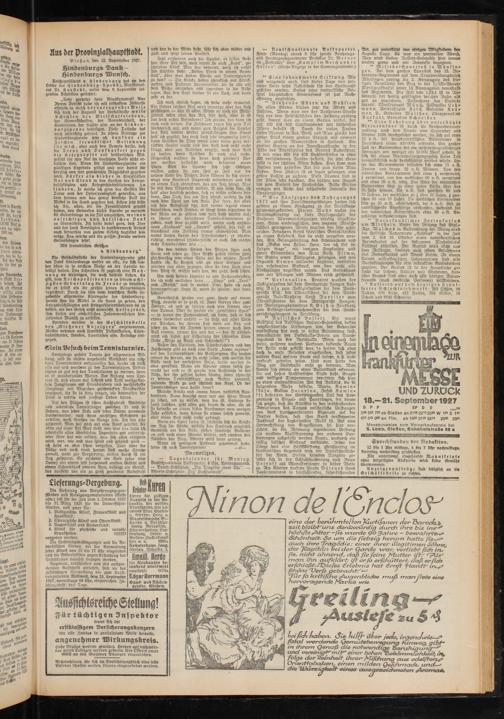 Angebote, verschlossen und mit entsprechender Aufschrift versehen, sind an der zuständigen Verwaltung bis zum Eröffnungstermin Mittwoch, dem 21. September 1927, vormittags 10 Uhr, einzureichen. Zu- fchlagsfrist: drei Tage.