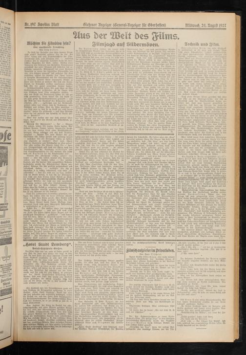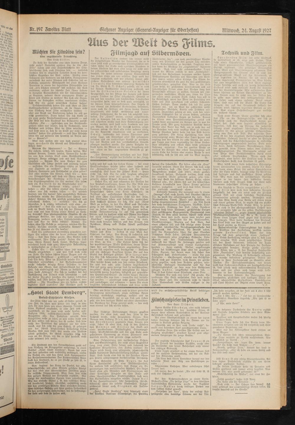 Uv. 197 Zweites Blatt Eichener Anzeiger (General-Anzeiger für Gberheffen) Mittwoch, 24. August (927