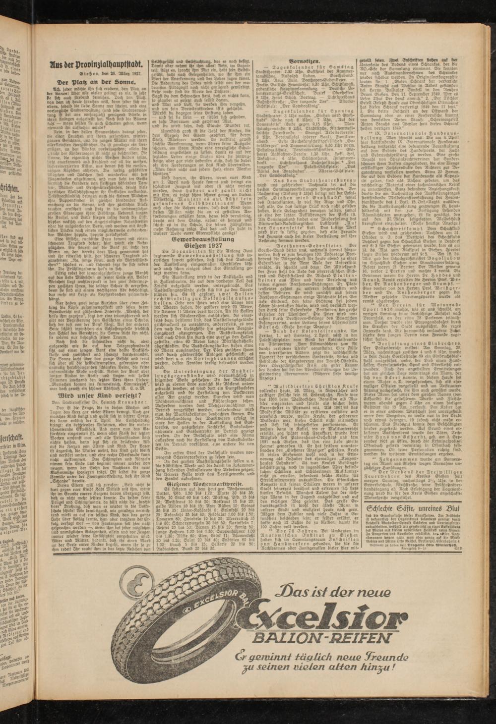 - TageSkalender f ü r Sonntag Stadttheater: 3 Uhr nachm. ..Dießen wird Großstadt" -Ende nach 6 Uhr) 7 Uhr ..Auf der Sonnenseite" <Ende gegen 9,15 Uhr» — Mat- tbäutgcmunDt 8 Uhr, Lladtlirch«. Kirchenmufi-
