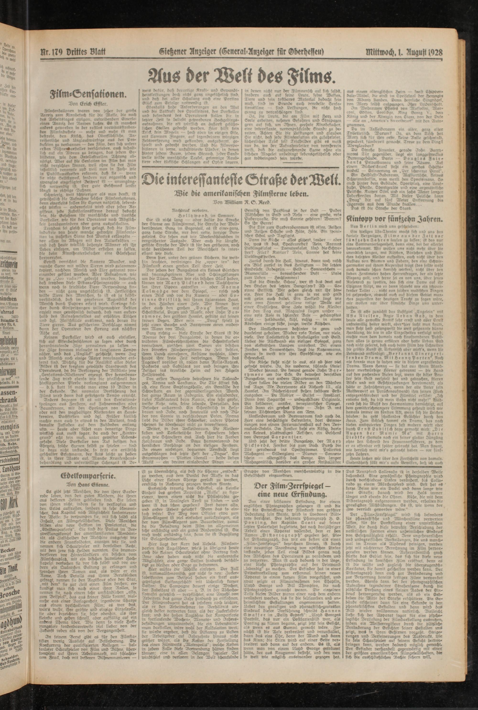Hr. 179 Drittes Blatt Sirtzener Anzeiger (Gencral-Anzelgcr für Gberhesscu) Mittwoch, |. August 1928
