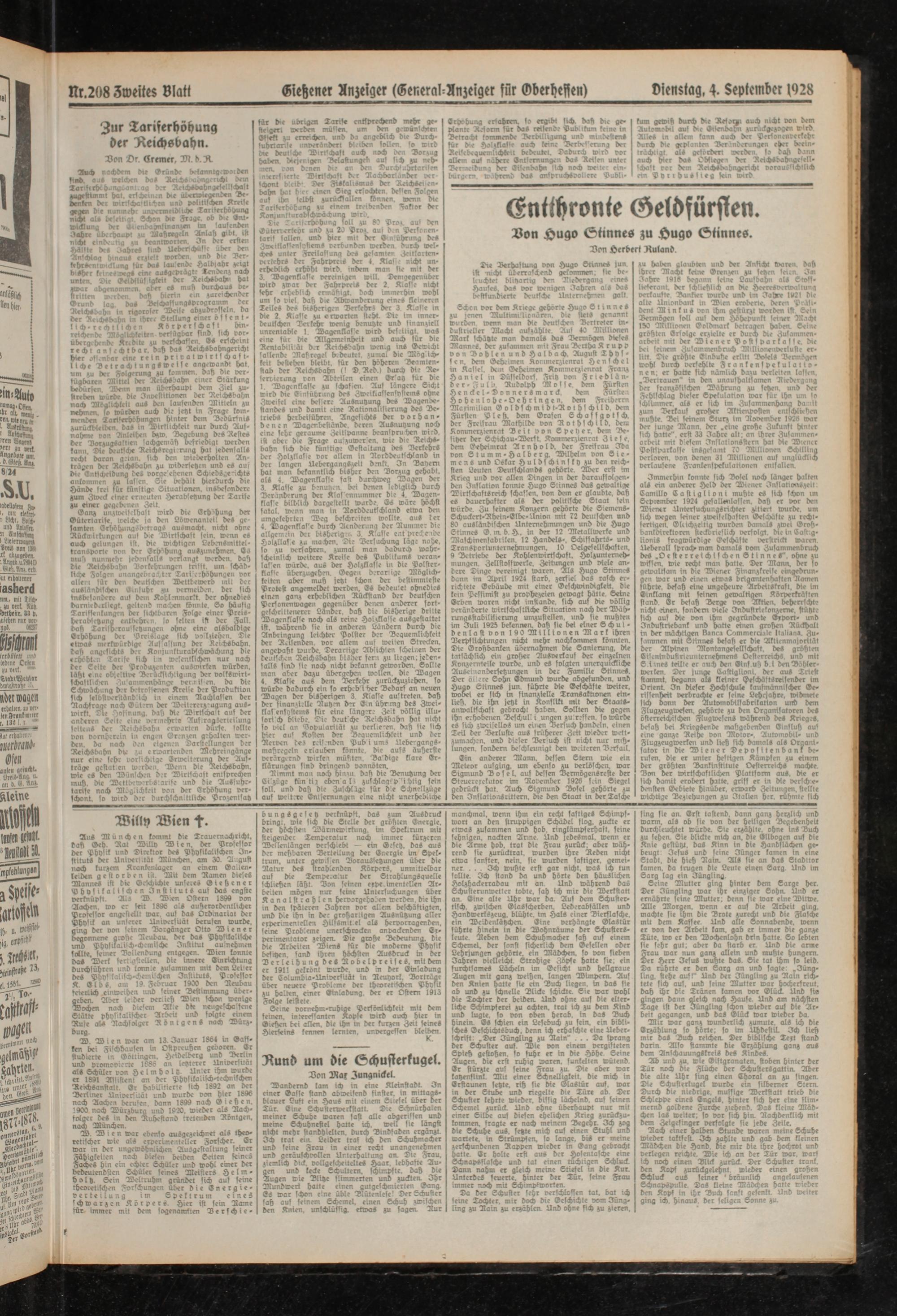 Hr.208 Zweites Blatt Giehener Anzeiger (General-Anzeiger für Gberheffen) Dienstag, 4. September (928