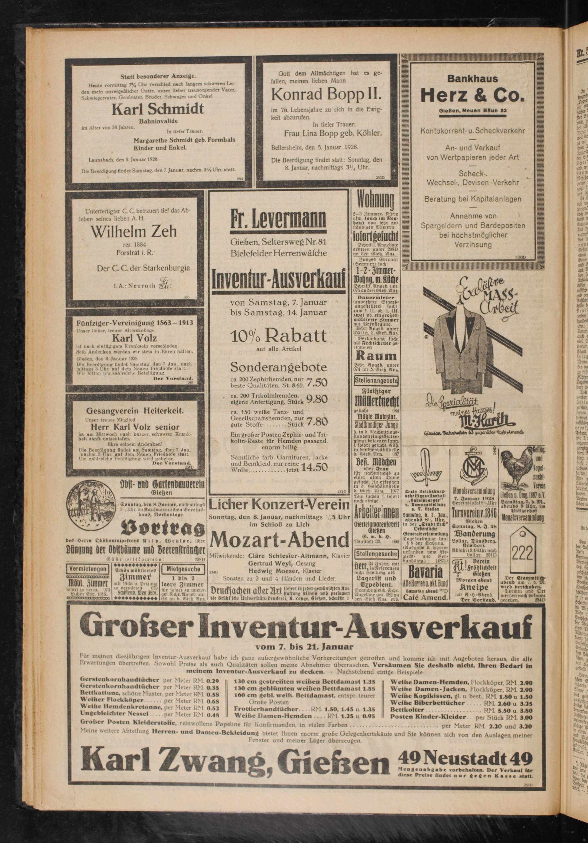 bür meinen diesjährigen Inventur-Ausverkauf habe ich ganz außergewöhnliche Vorbereitungen getroffen und komme ich mit Angeboten heraus, die alle rwartungen übertreffen. Sowohl Preise als auch Qualitäten sollen meine Abnehmer überraschen. Versäumen Sie deshalb nicht, Ihren Bedarf In meinem Inventur-Ausverkauf zu decken. — Nachstehend einige Beispiele: