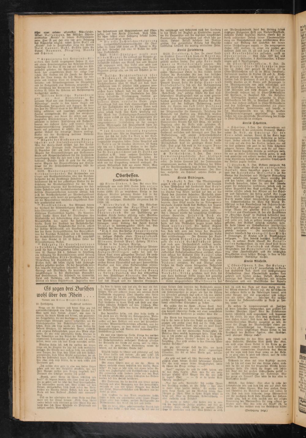 f. N a n st a d l, 5. Ian. Am Nloniagmorgen gegen 6 Uhr gab eS Feuerlärm. Cs brannte in dem Wohnhaus des Landwirt» Karl Seyf - fort. Der Durchzugsbalken am Kamin deS zweiten Stockes fing Feuer, welches auf den an der Wand deS Zimmers stehenden Waschtisch übersprang. der mit der gesamten darin besindlichen Wäscheausstattung der Tochter deS Haute« verbrannte. Zum Glück wurde die im Ncbcntzimm.'r schlafende Tochter durch daS Knistern deS Feuer« wach, und fo konnte man den Brand löschen, noch ehe er größeren Schaden getan hatte. — Am 1. Januar wurde der langjährige Ortsdiener unserer Gemeinde, Friedrich Dach ein KriegSveteran von 1870/71, der 42 Jahre lang seinen Dienst mH großer Pflichttreue verleben hatte, auf sein Nachsuchen wegen seines hohen Alters pensioniert. Ein halbes Dutzend Dewerber für das Polizeidieneramt ist vorhanden, doch will man von feiten der Gemeinde aus Sparsamkeitsgründen dem Feldfchützen dieses Amt mitübertragen. — Im Sommer hat Kaufmann Heinrich Fitzenberger jn der Hintergasse ein neues Geschäftshaus gebaut, oaS noch zum Weihnacht-fest eröffnet wurde. Ebenso hat der Installateur Heinrich Weiß In der Nähe de» DabnhofeS ein Spengler- und elektrische- InstallationSwerkhauS errichtet, ebendort erbaut der Gastwirt Otto Nuppel neben seiner Wirtschaft Im Frühjahr eine Metzgerei, ferner will ein auswärtiger Däcker noch eine Bäckerei errichten, die auS Mangel einer solchen im Dorfe einem dringenden Bedürfnis entspricht. — Zur Zeil werden viele Wagen Kleinpslaster an die Staatsstraße Nanstadt — Nidda gefahren, weil diese bis zum Hain halbwegs Nidda wegen deS aewaltig gesteigerten Autoverkehr» gepslastert werden soll. — Unser neugegründeter Musikverein Hal
