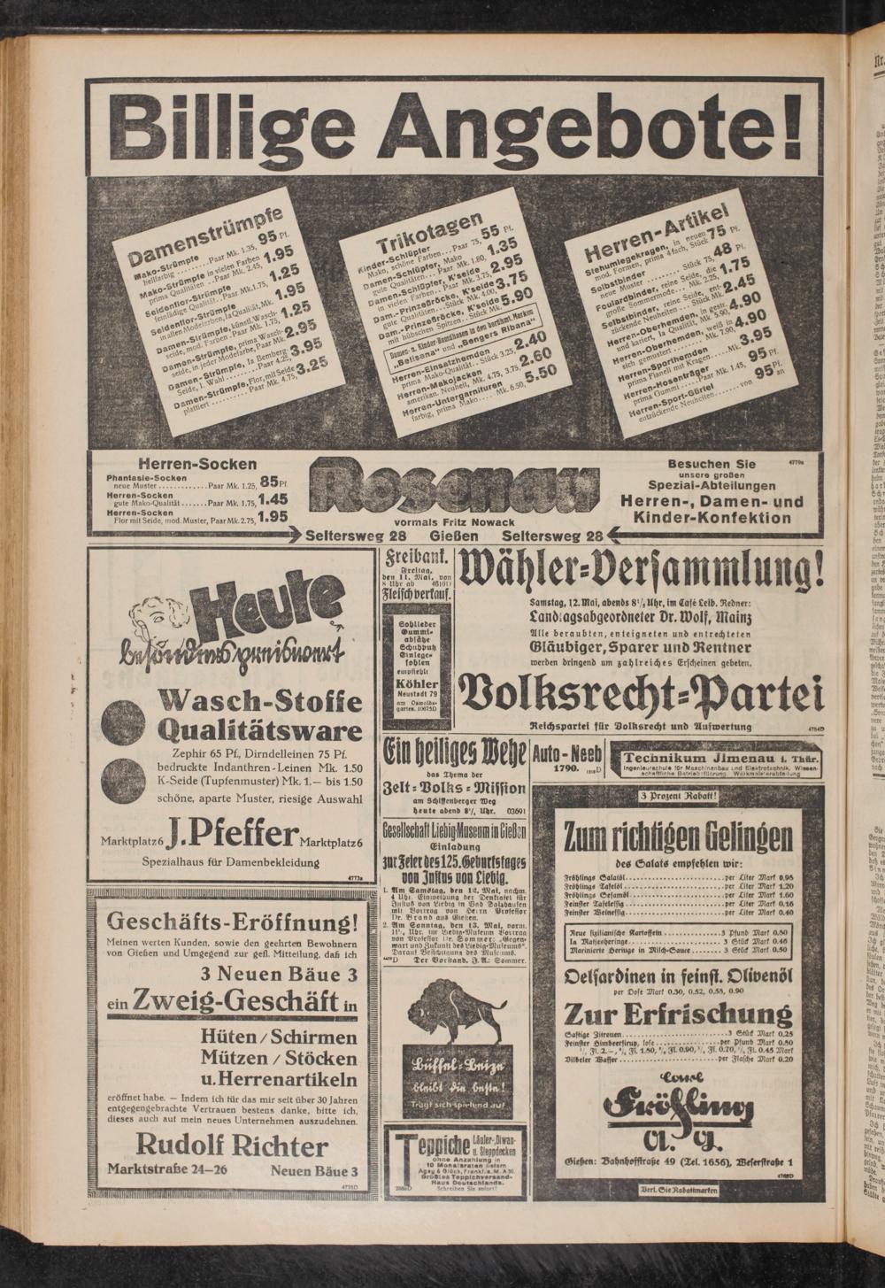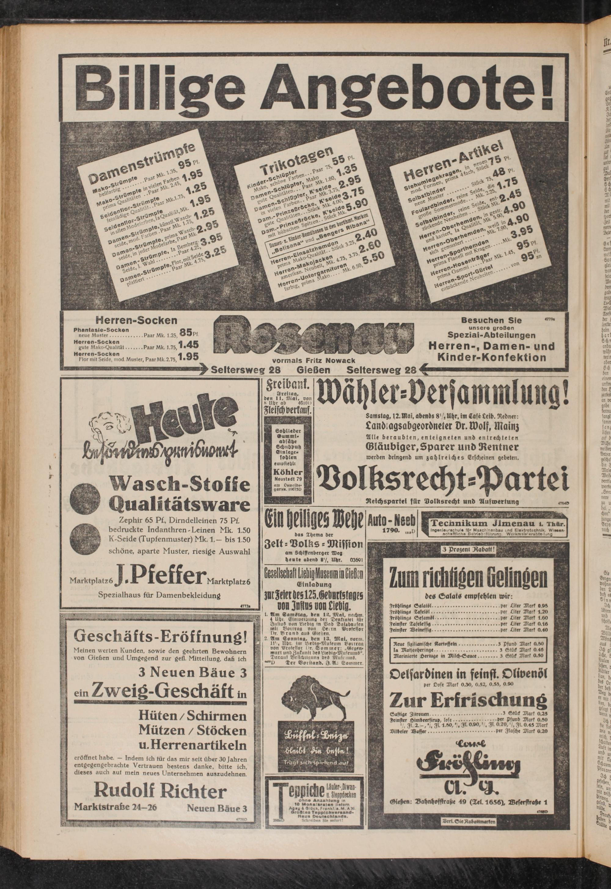 I. flm LamStng. den 12. Mai. nnchm. 4 Uh« (giniDCibunfl der Denkiafet für InsiuS von Eiebtg in Gnd LaUhausen mii yoitrag oon He»rn Brosessor Dr. Brand au» Gienen.