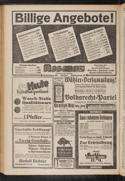 Meinen werten Kunden, sowie den geehrten Bewohnern von Gießen und Umgegend zur gefl. Mitteilung, daß ich