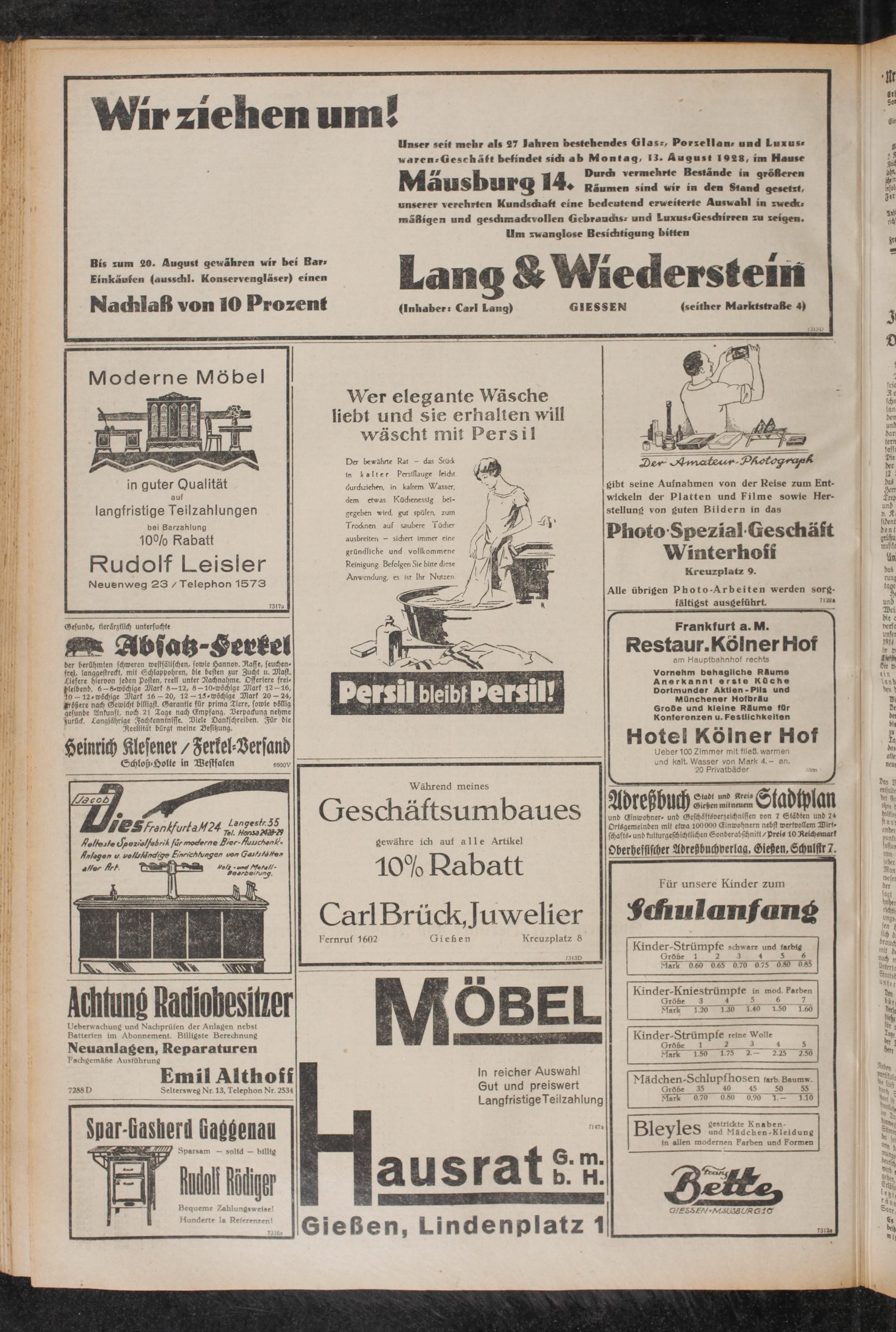 Unser seit mehr als 27 Jahren bestehendes Glas-, Porzellan» und Luxus» waren»Geschäft befindet sidi ab Montag, 13. August 1928, im Hause AJ « ■ । M Durch vermehrte Bestände in größeren