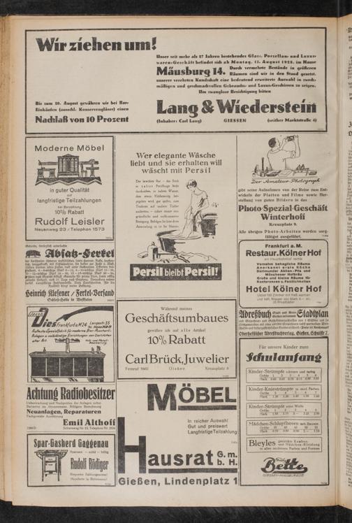 Adreßbuch ax.™ Siadipian und «Inwohner, und Geschästöverzeichniffen von 7 Städten und 7» OrtSgemeinben mit etwa 100000 Einwohnern nebst wertvollem Wirt- schafts- und kulturgeschichtlichen Sonderabschnitt/Preis 10 Reichsmark Oberhesslscher Adreßbuchverlag, Lietzen, Scholstrl.