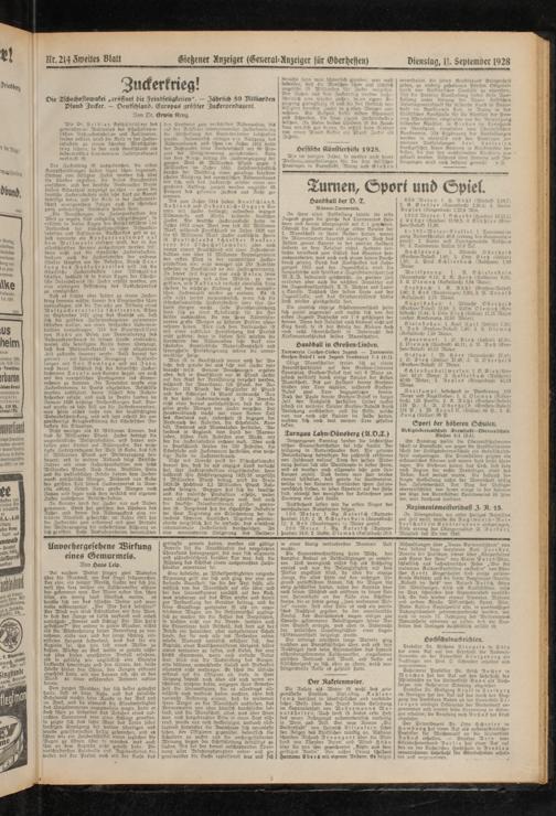 100 Meter: 1 Dg. Kaletsch (Ruttershausen) 11.6; 2. R. Schieserstein (Launsbach) 12; 3 Erb (Daubringen) 1 z Meter zurüd.