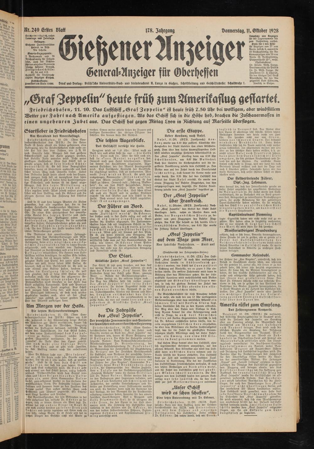 „Graf Zeppelin" heute früh zum Amerikaflug gestartet.
