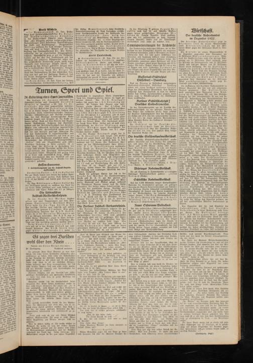 Durch die gestrigen Spiele hat sich in der Runde der Meister die Spielvereinigung Fürth und K. F. B. auf den zweiten und dritten Tabellenplatz voraeschoben und vor Wormatia, Eintracht und Kickers gelegt, während die Münchener Bayern immer noch die Spitze behaupten. Die beiden letzten Tabellenplätze werden von den punktlosen Spvgg. Waldhof und F. D. Saarbrücken eingenommen. In der Gruppe Südost der Zweiten und Dritten führt der 1. F. C. Nürnberg ohne Punktverlust vor D. s. R. Fürth und Sp. B. München. In der Gruppe Nordwest liegt F. Sp. B. Frankfurt an erster Stelle vor B. f. L. Neckarau und Rot-Weiß Frankfurt.