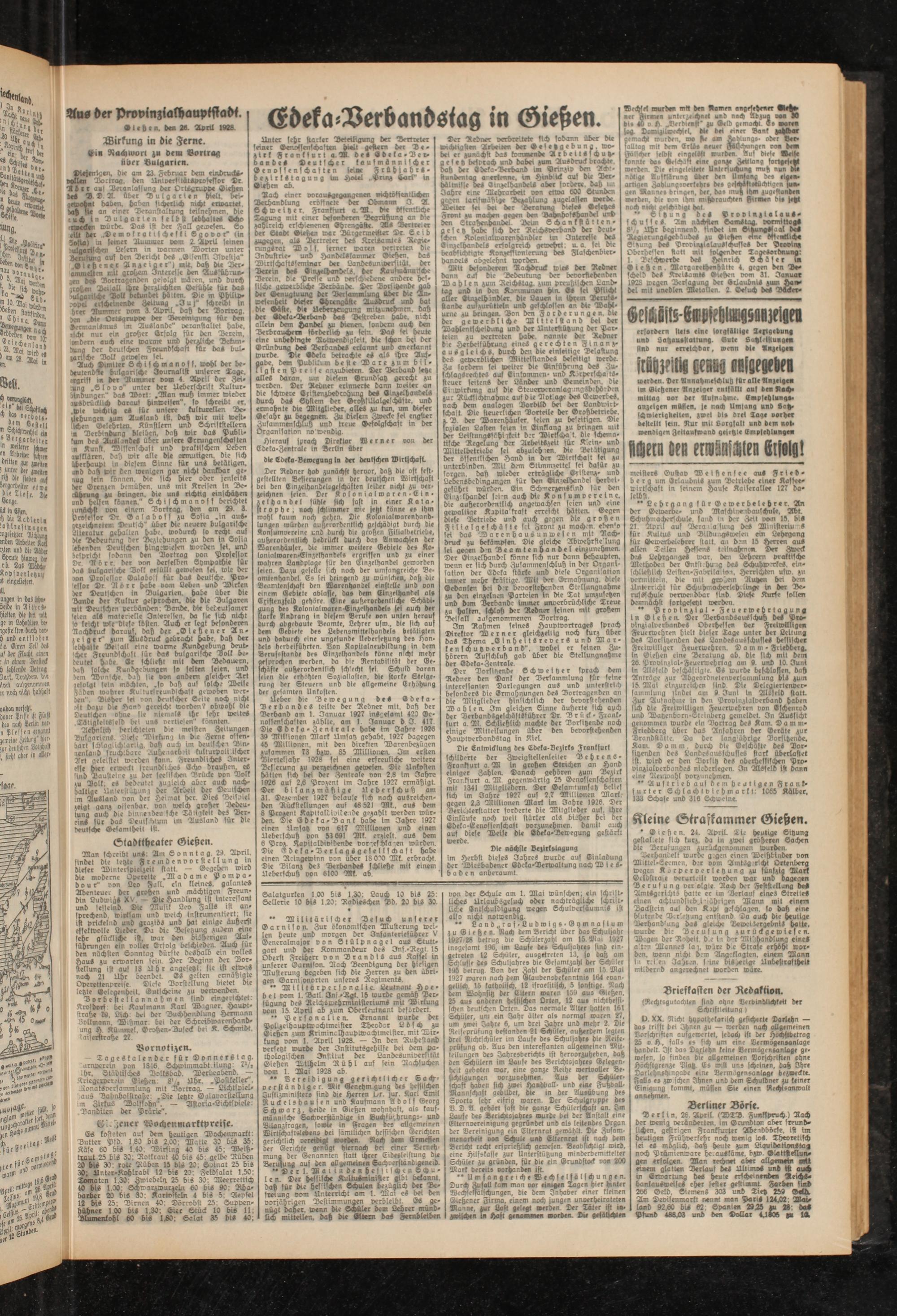 • Diesten. 24. April. Lte heutige Sitzung gestal.ete sich kurz, bi in zwei gröberen Sachen die Berufungen Aurüdgcnommen wurden.